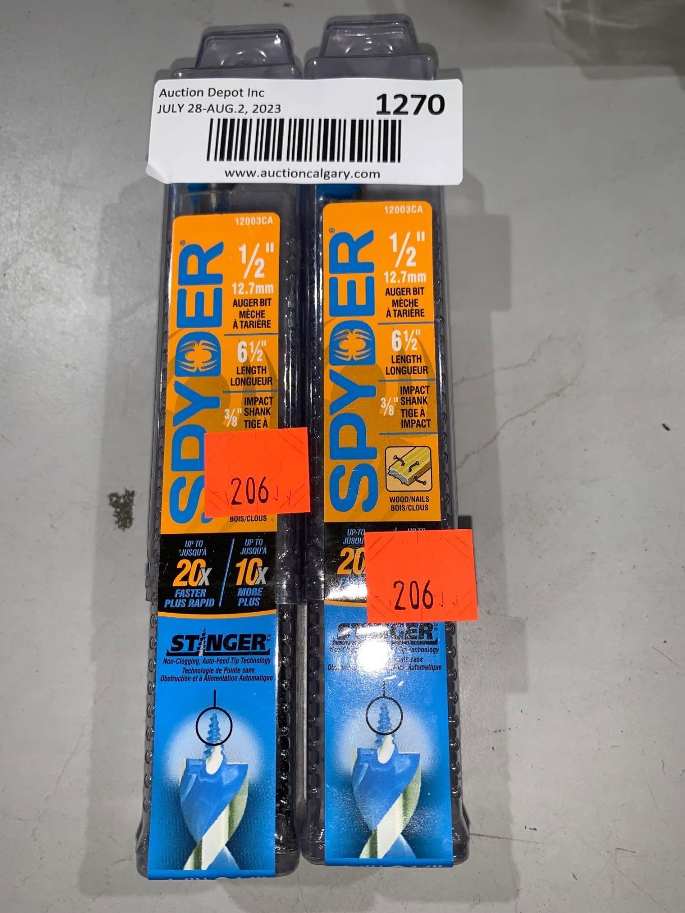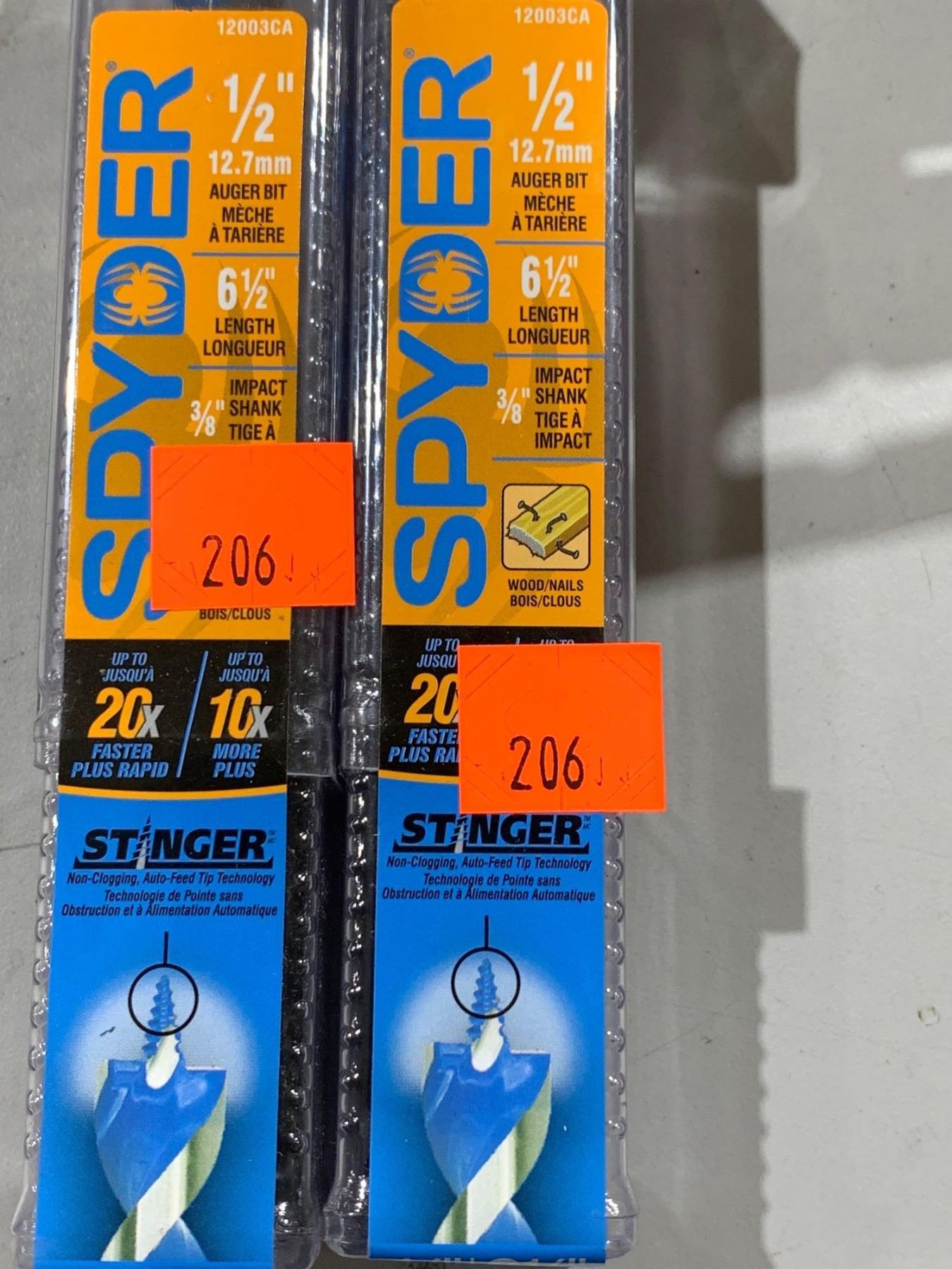 Spyder 1/2" Auger Bit 6 1/2: Length  Stinger Lot of 2