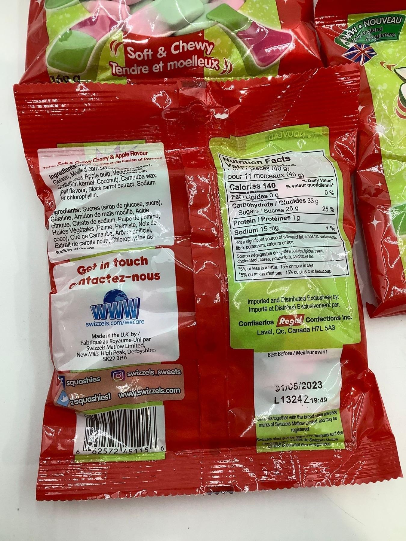 Squashies Cherry & Apple Flavor Candies 9x160g