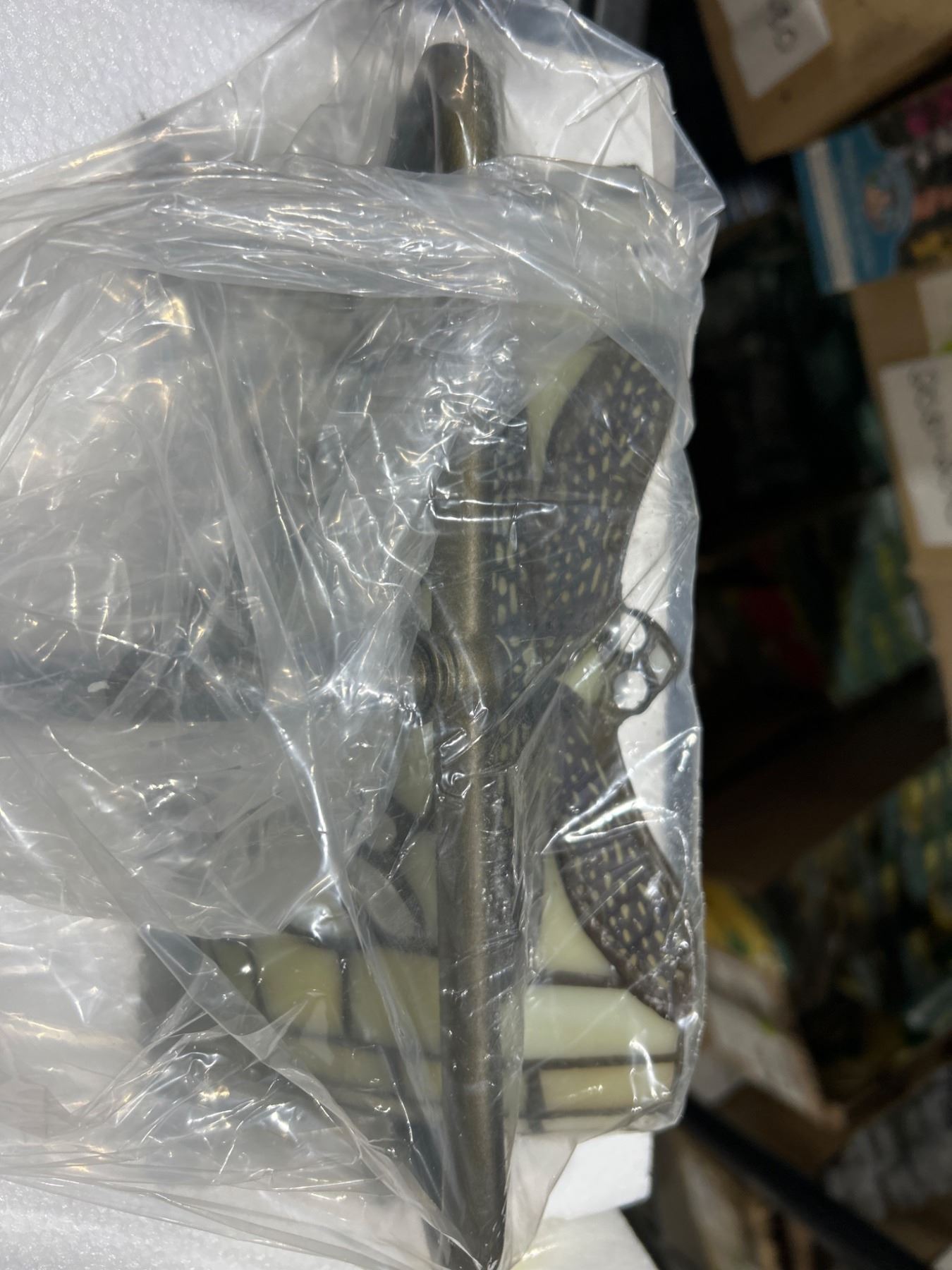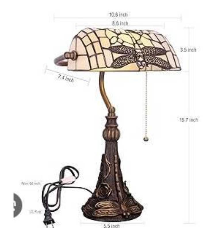 Stained Glass Desk Lamp with Dragonfly Design and Metal Base Item R57R