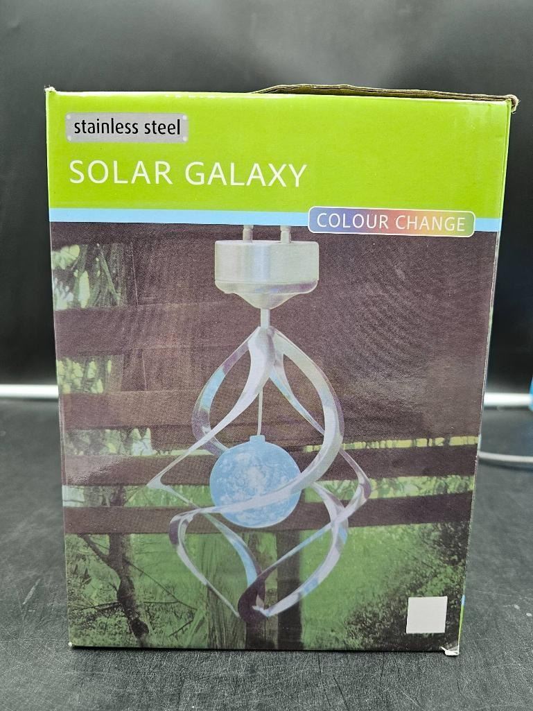 Stainless Steel Solar Galaxy Wind Spinner with Color Change LED Light