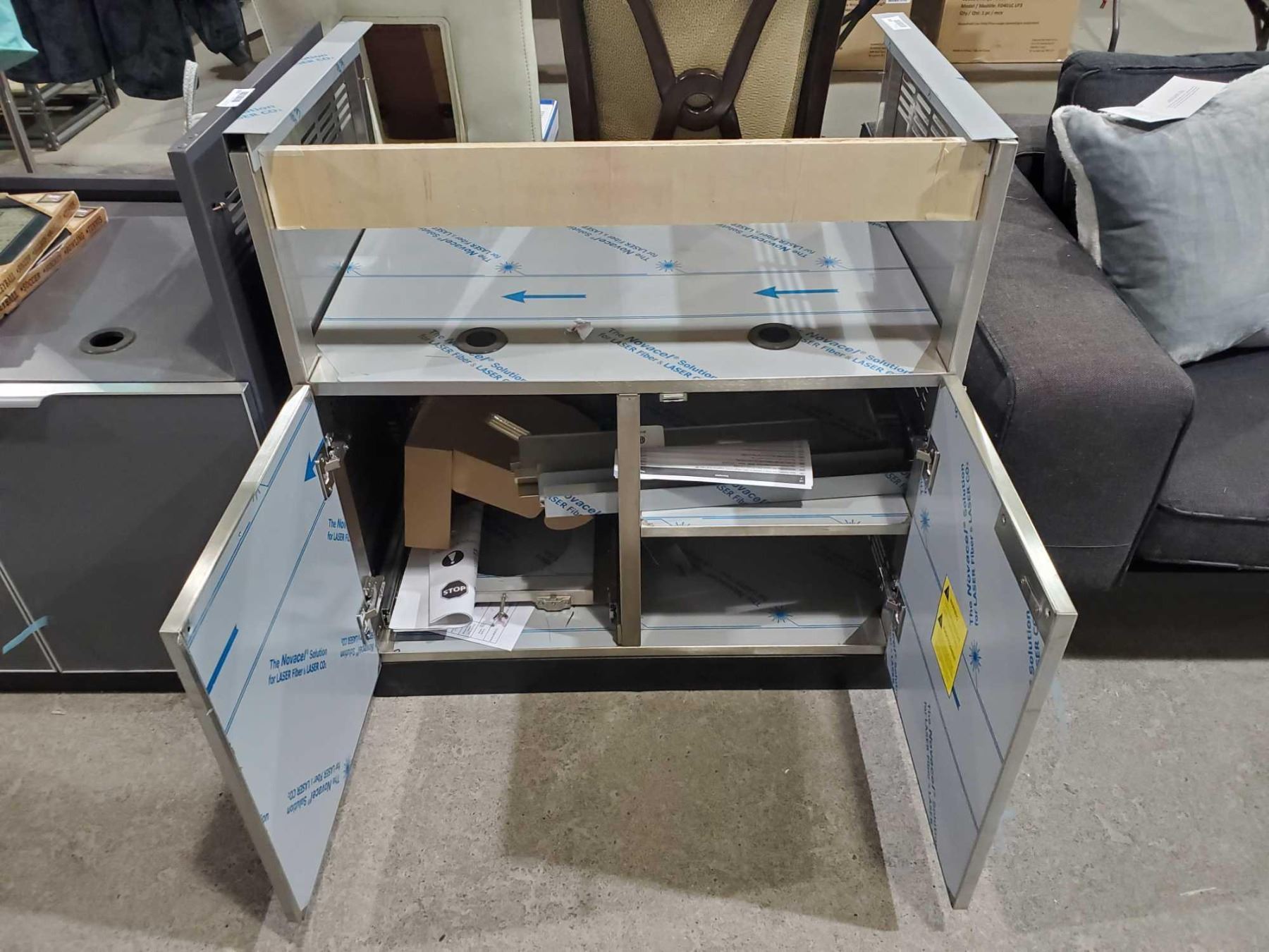 Stainless Steel double door BBQ Stand, includes shelving and gas line ports,  Patio Furniture System