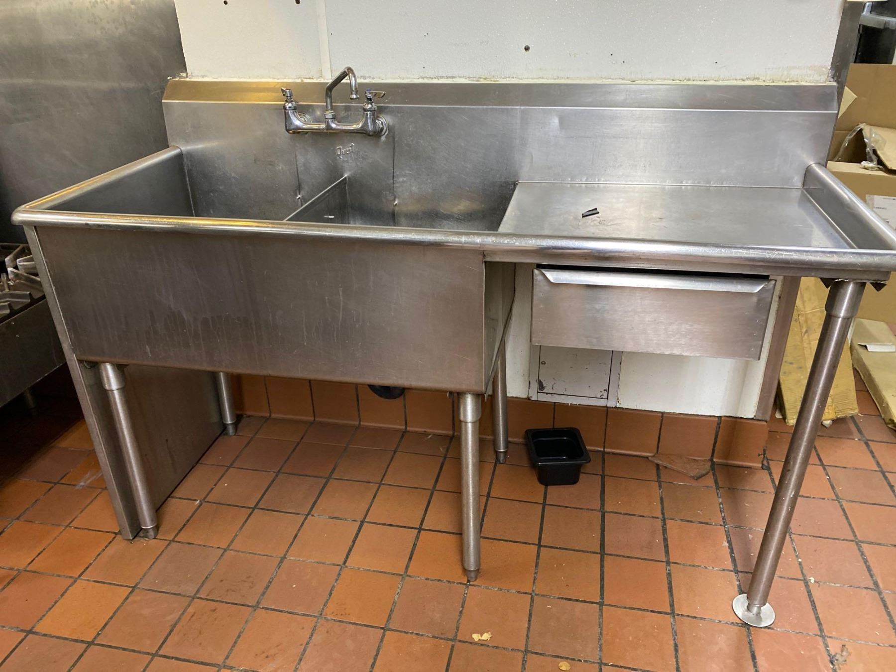 Stainless Steel double well sink with RH run off with drawer - BUYER MUST PROFESSIONALLY DISCONNECT AND CAP