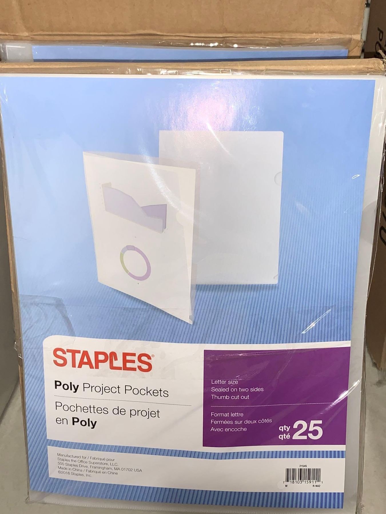 Staples Clear Poly Project Pockets Letter Size Sealed on 2 sides Thumb Cut Out Case of 5 x's 25 per pack
