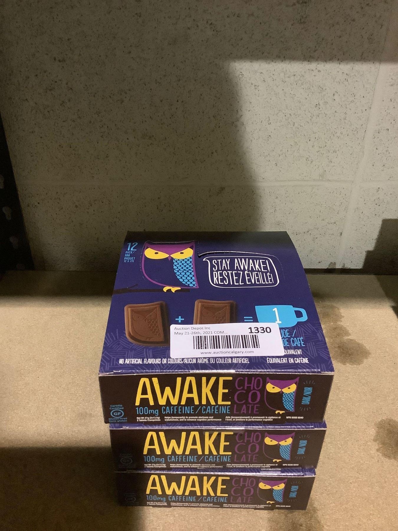 Stay Awake Caffeinated Chocolate (12 x 27g) Lot of 3