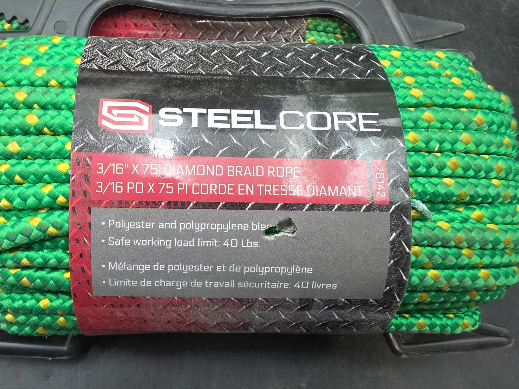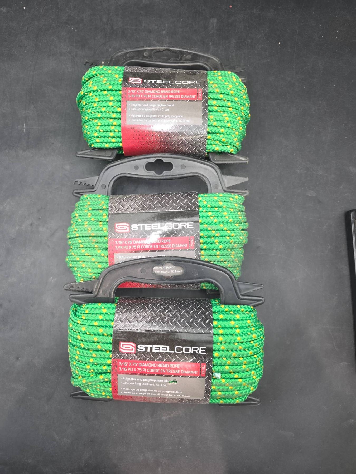 Steelcore 3/16″ x 75′ Diamond Braid Rope, Polyester and Polypropylene Blend (Set of 3)