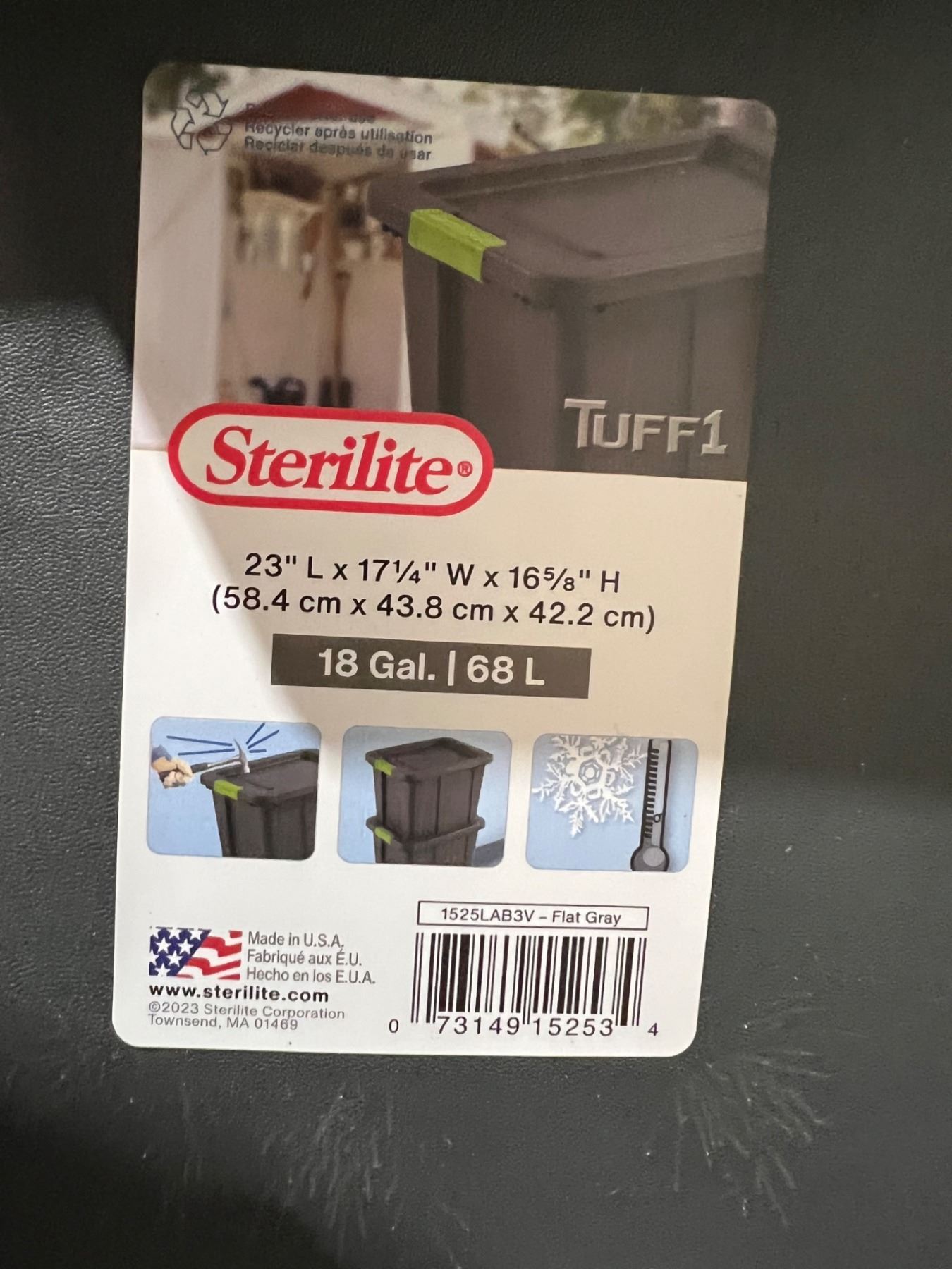 Sterilite 18-Gallon Tuff1 Storage Tote With LidÊ Model 1529, Flat Gray