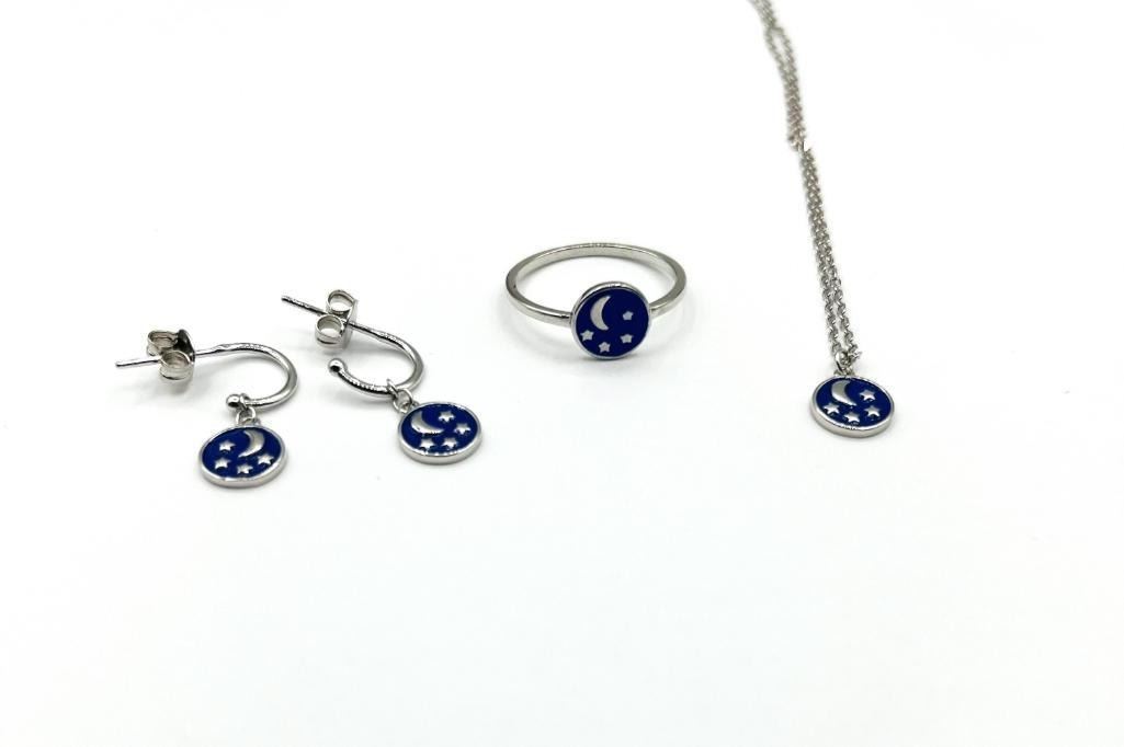 Sterling Silver Enamel set of Ring, Necklace and Earring, W/A $400.00.