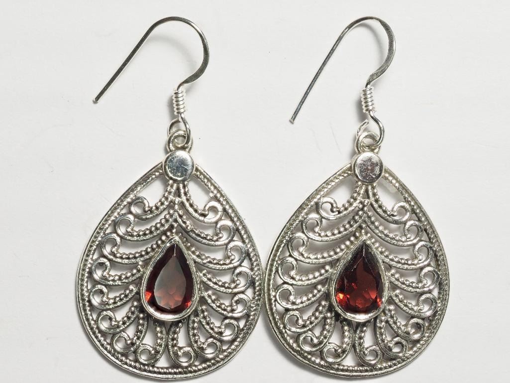 Sterling Silver Garnet Antique Style Earrings. Approx. Retail $360 (Estimated Selling Price From $54 up to $108)