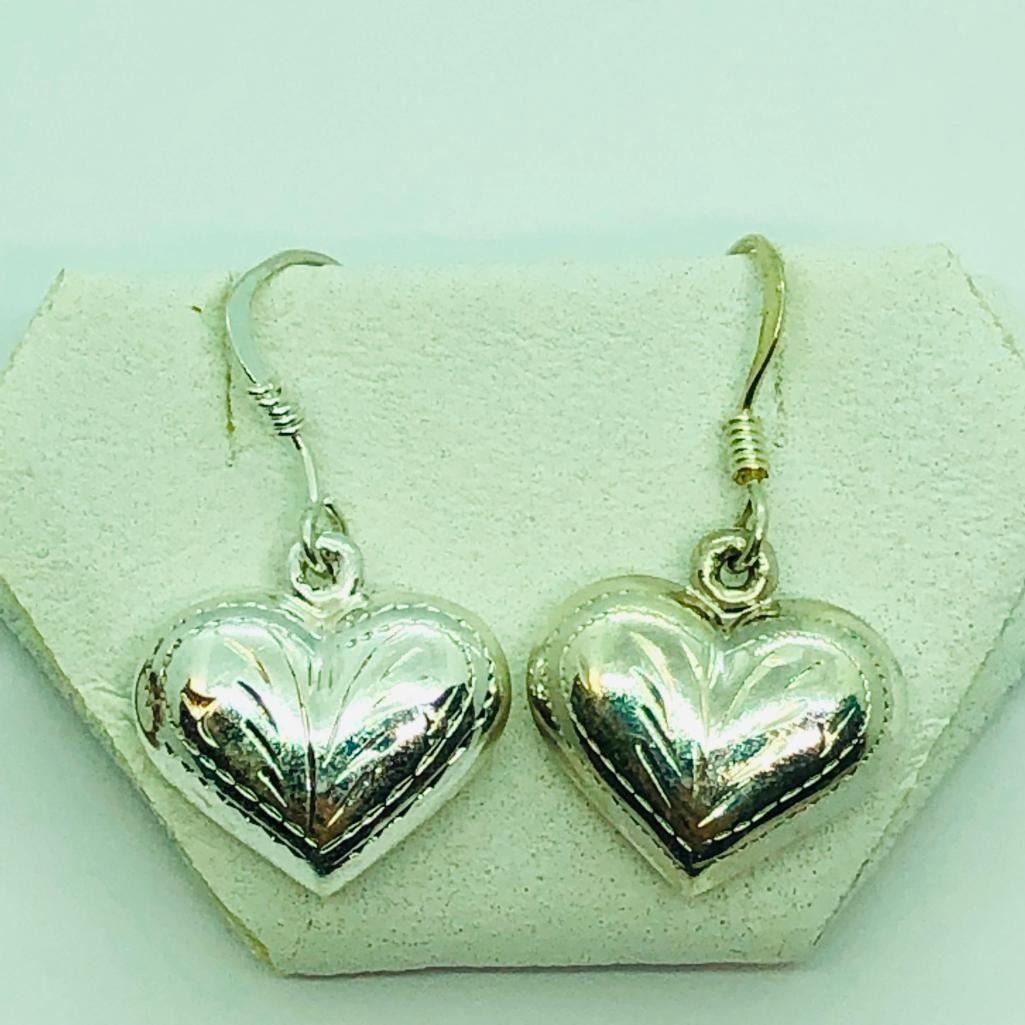 Sterling Silver Heart Shaped Earrings (~weight 2.5g), Suggested Retail Value $60