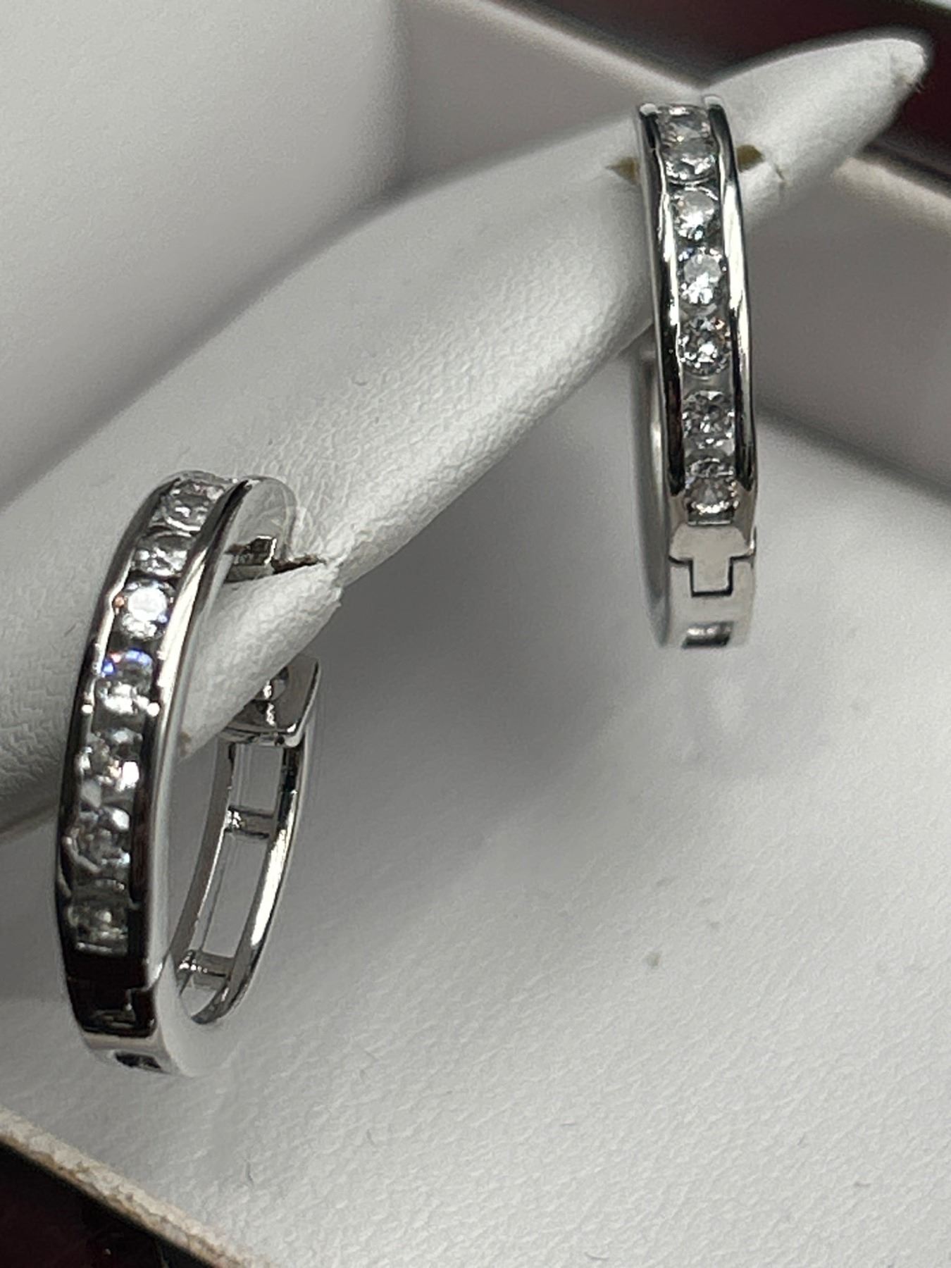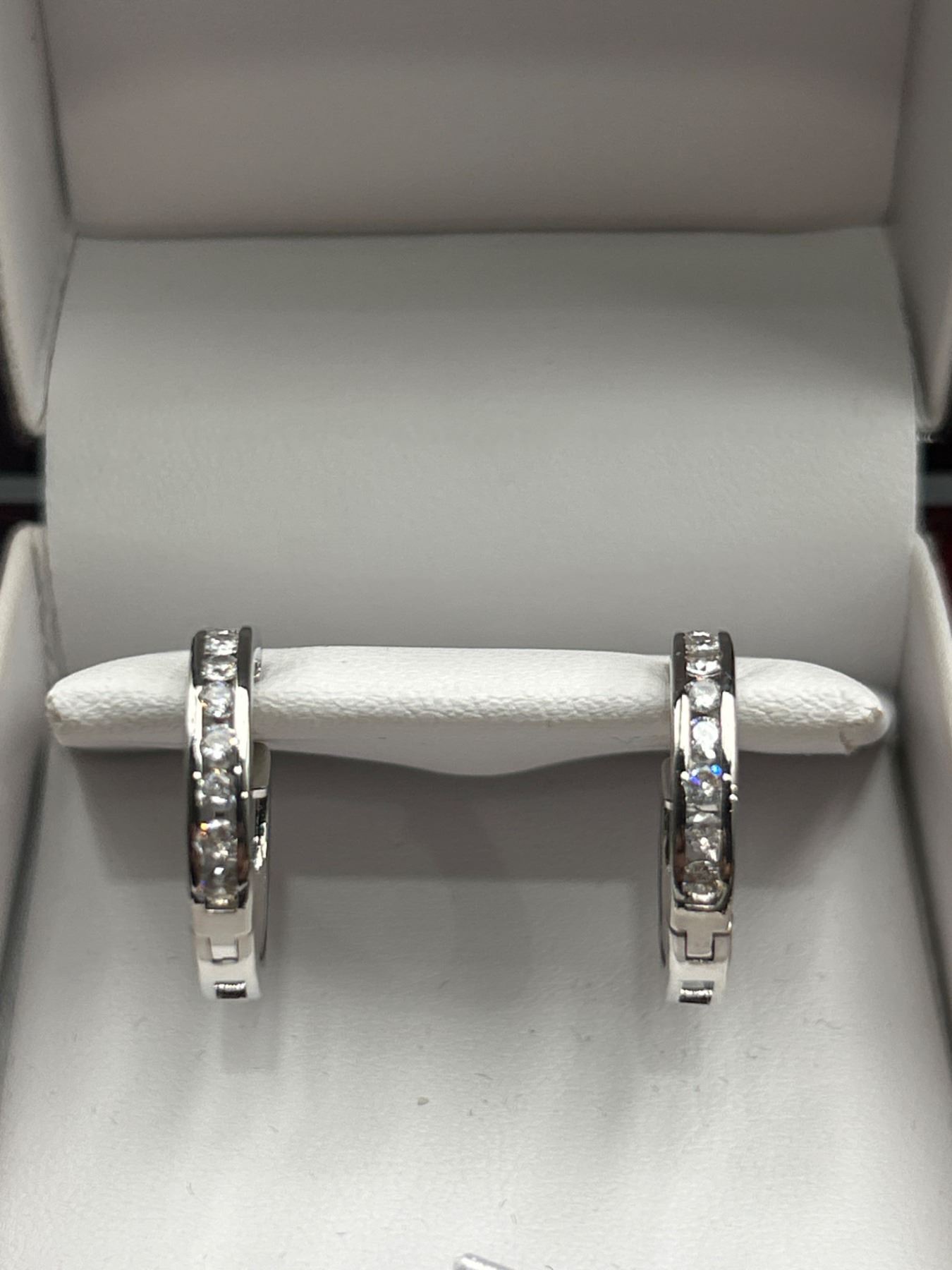 Sterling Silver Hoop Earrings with Cubic Zirconia Accents