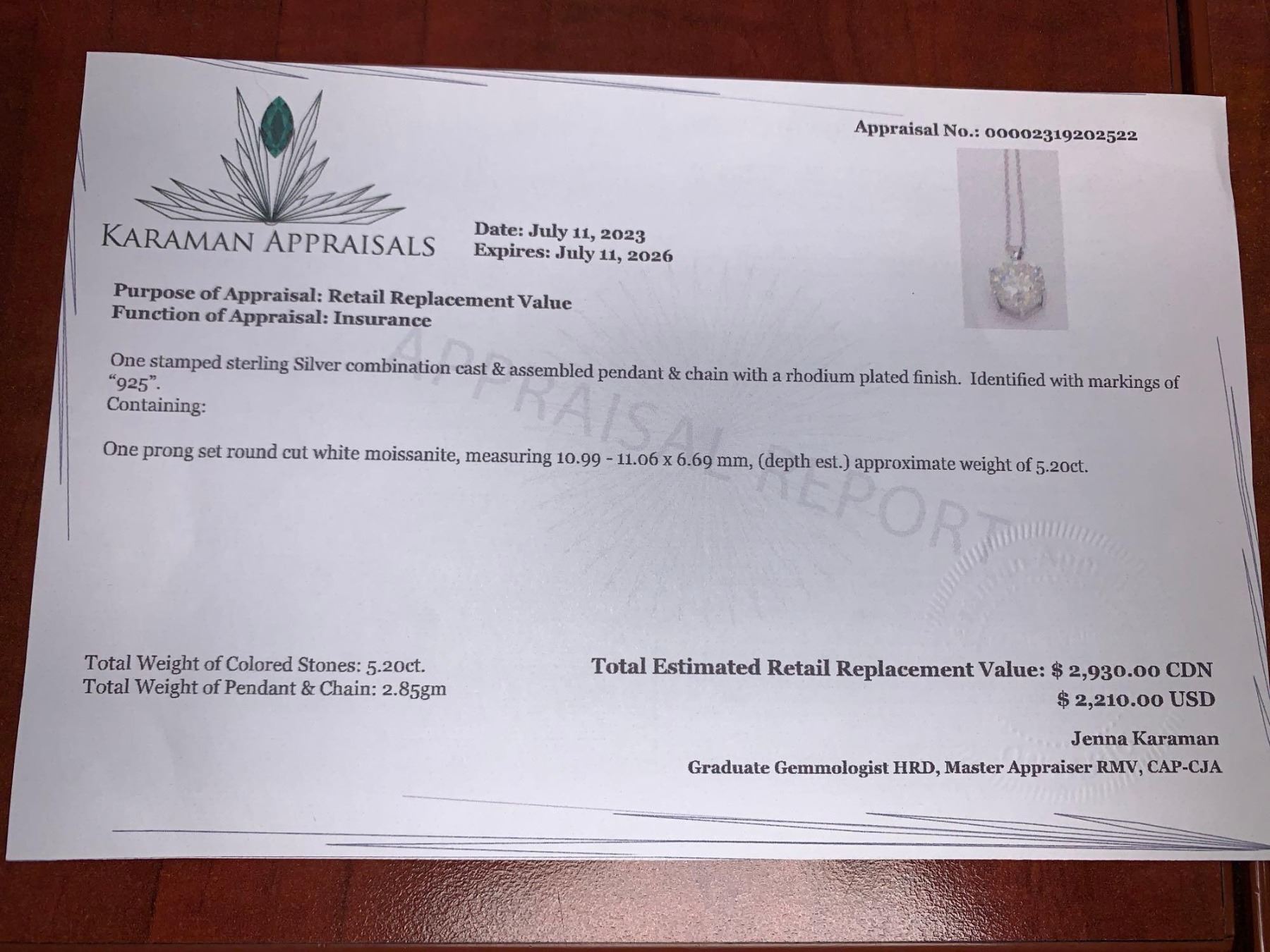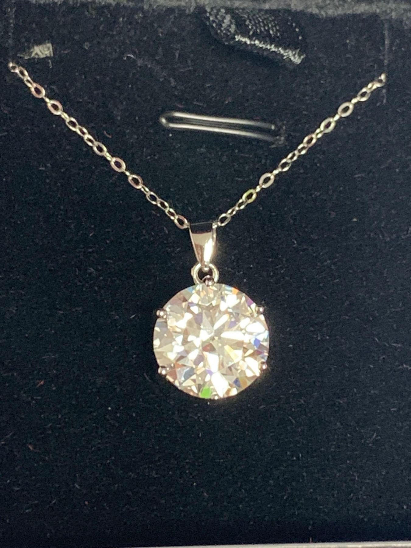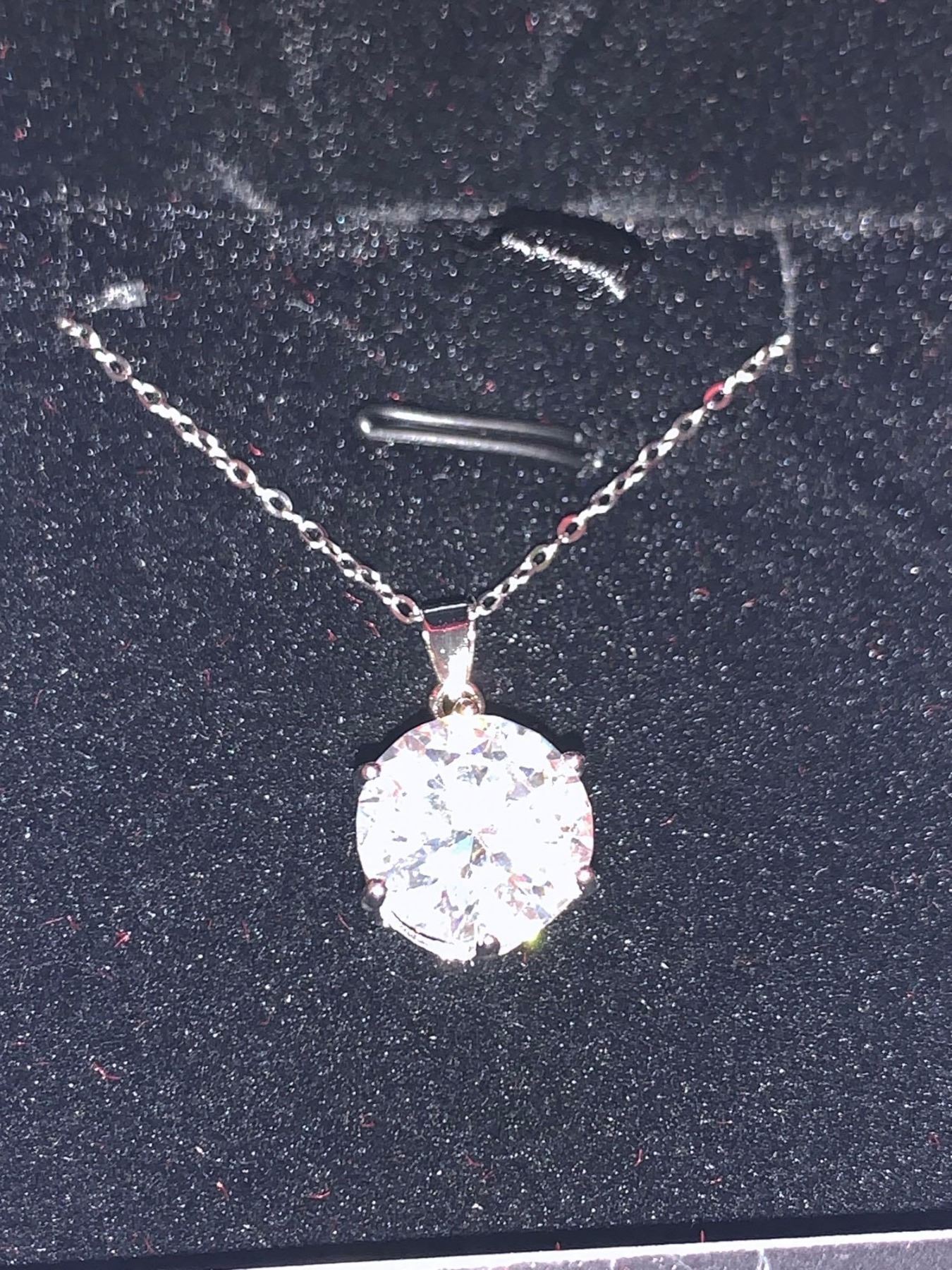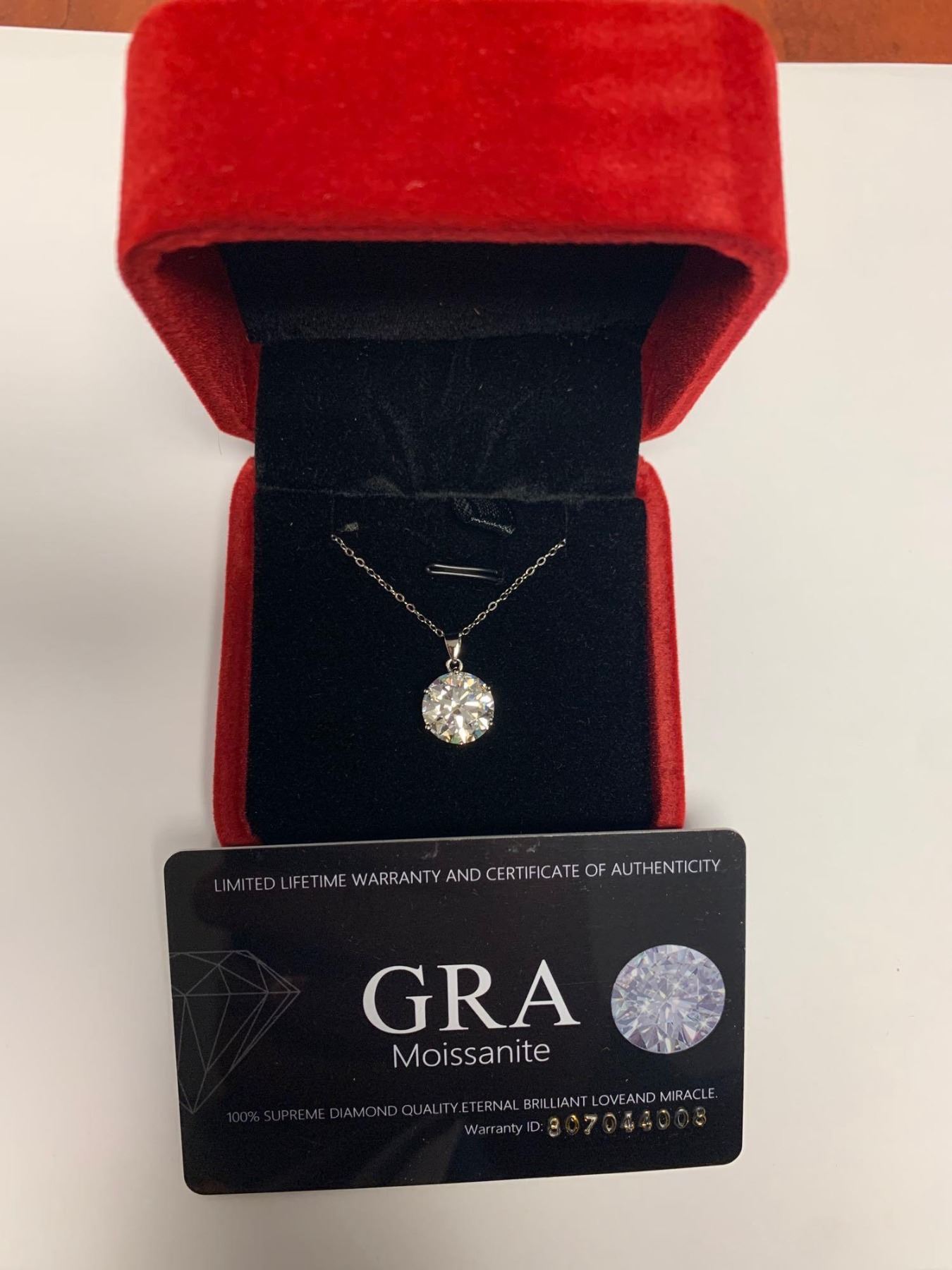 Sterling Silver Rhodium Plated 5.22 Carat Moissanite Solitaire Pendant & Chain Set with Appraisal Certificate $2,930.00
