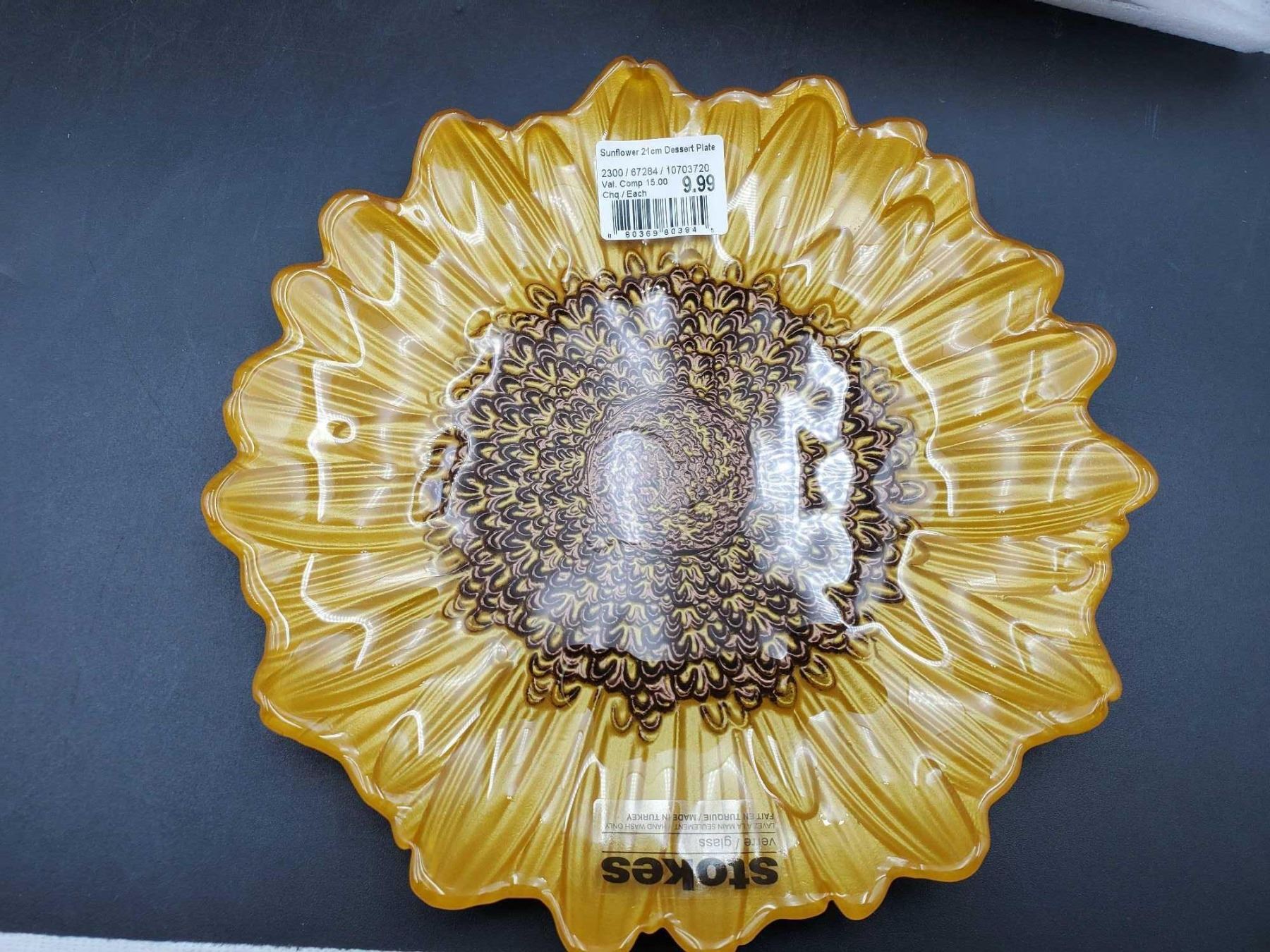 Stokes Decorative Sunflower Dessert Glass Plate (21cm x 6)