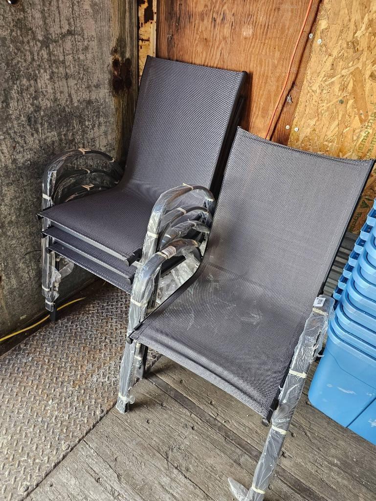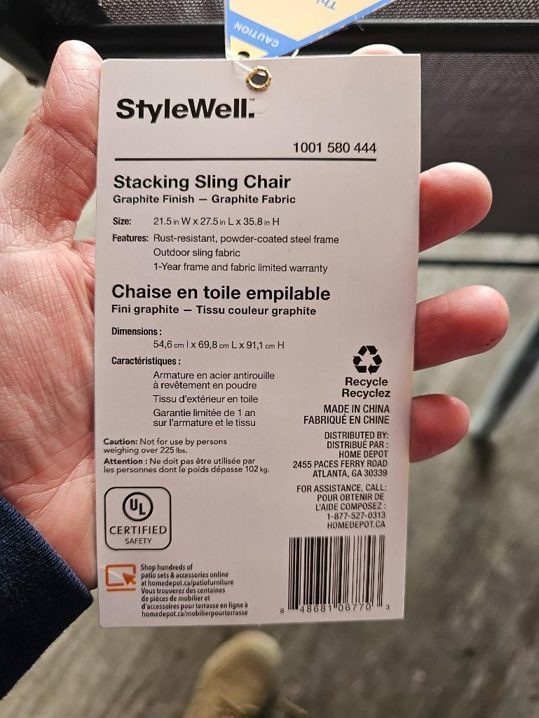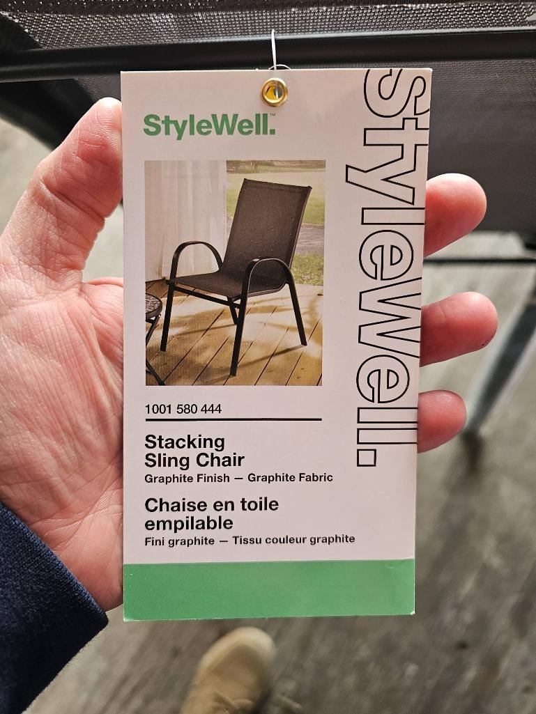 StyleWell Stacking Sling Chair Set with Graphite Finish and Fabric