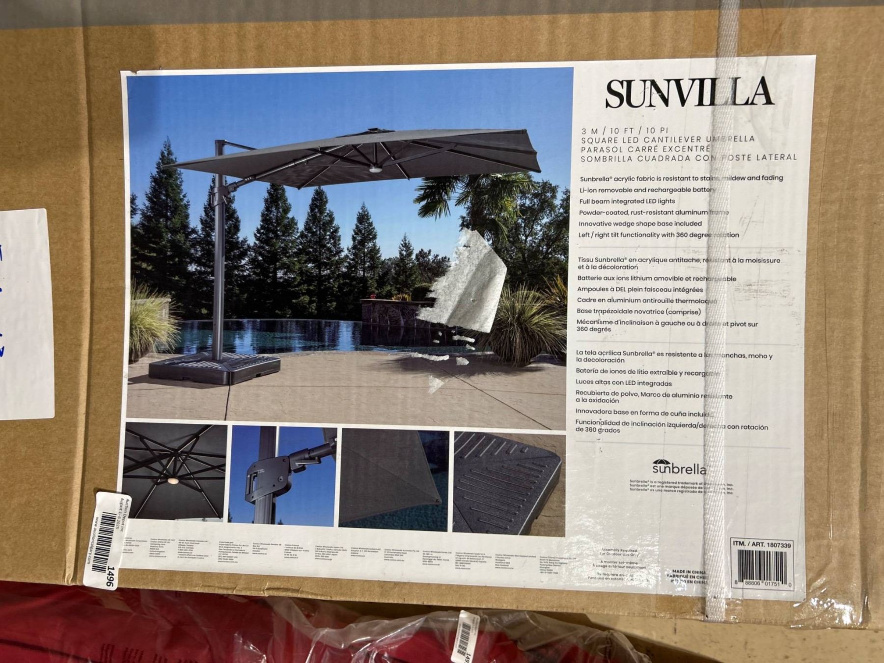 SunVilla 10ft Cantilever Umbrella with LED Lighting