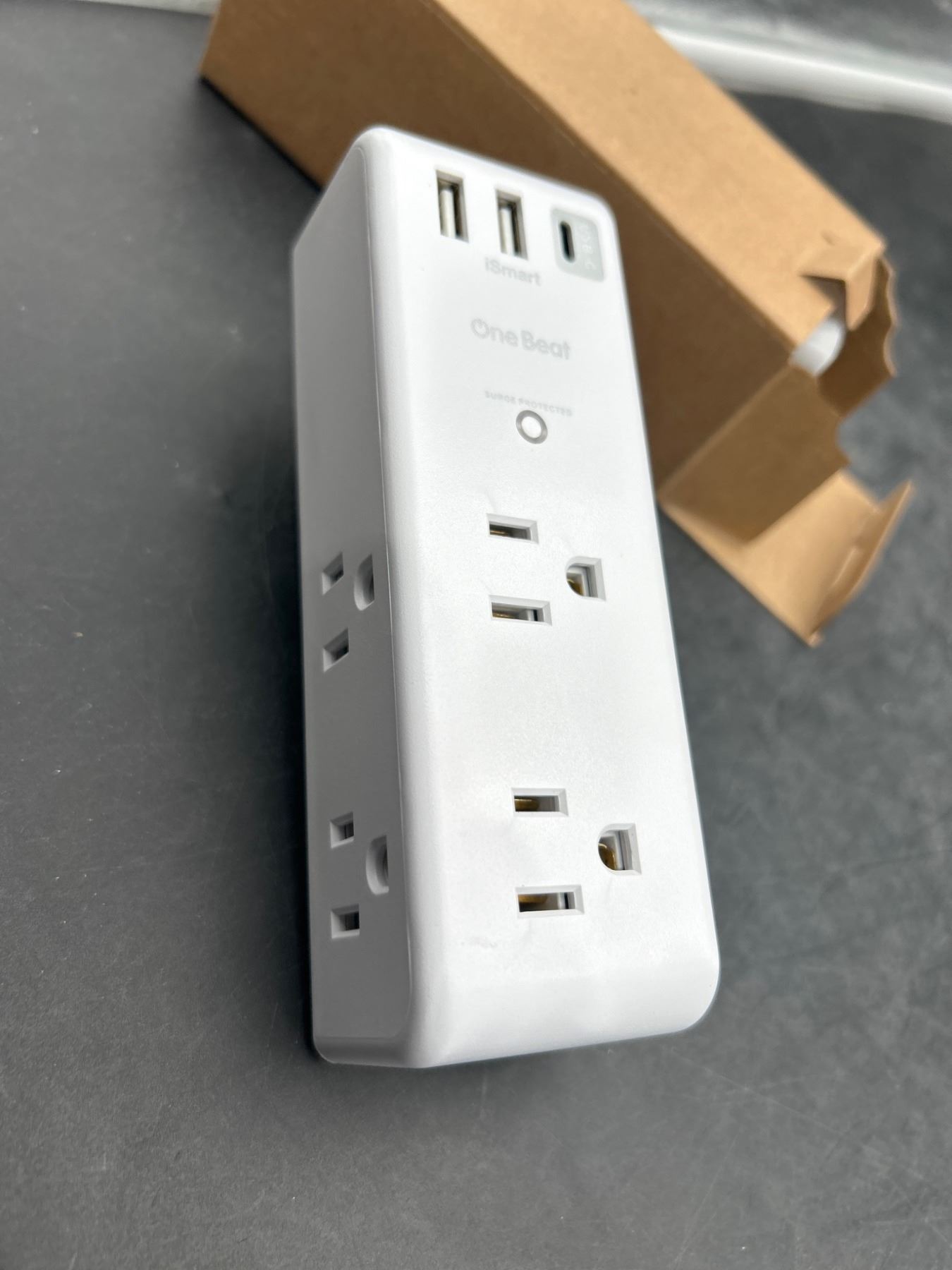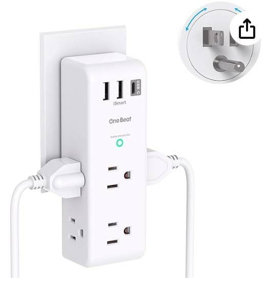 Surge Protector Outlet Extender – with Rotating Plug, 6 AC Multi Plug Outlet with 3 USB Ports (1 USB C), 1800 Joules, 3-Sided Swivel Power Strip