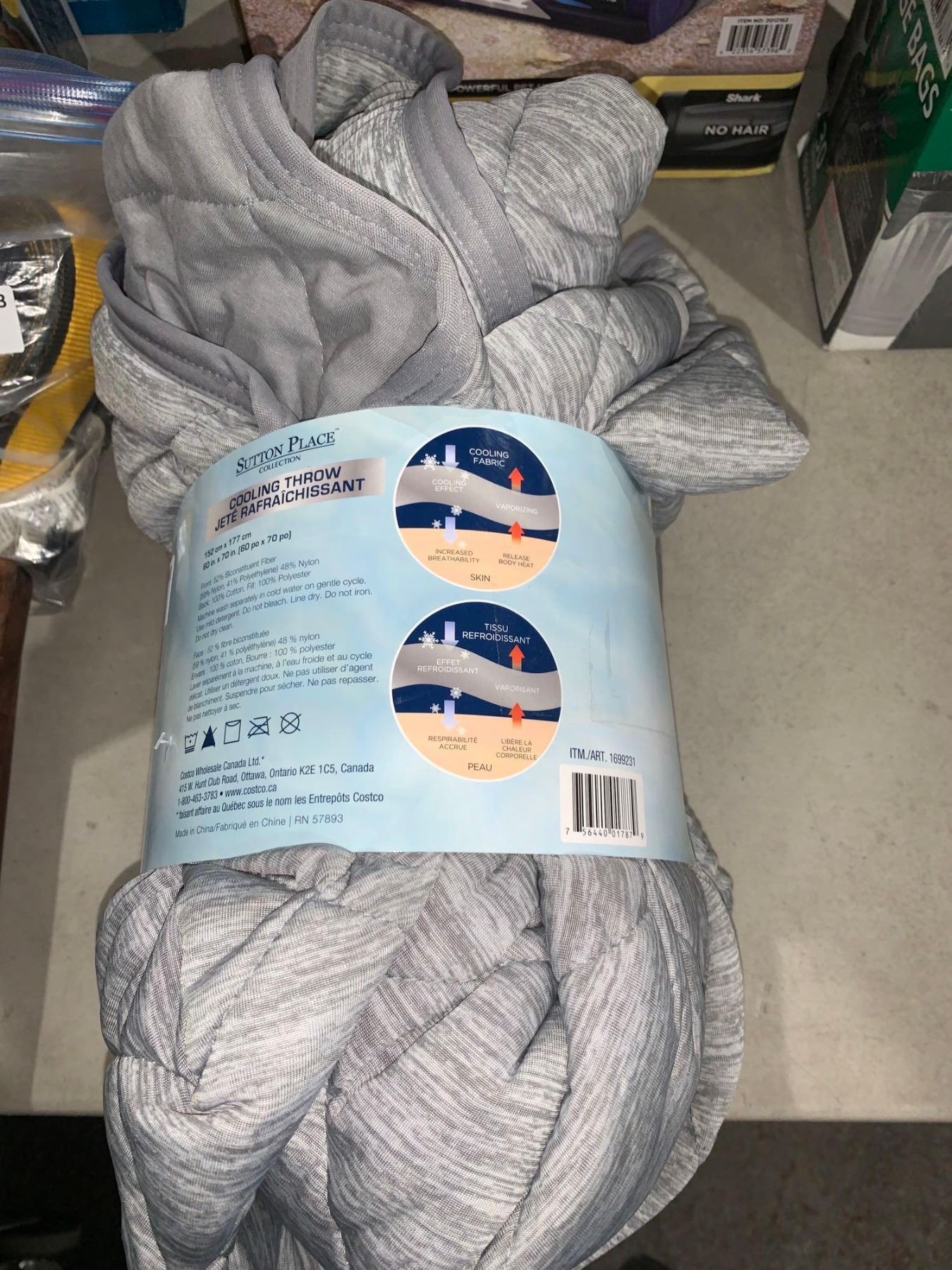 Sutton Place Collection Cooling Throw 60"x70" Grey Reversible