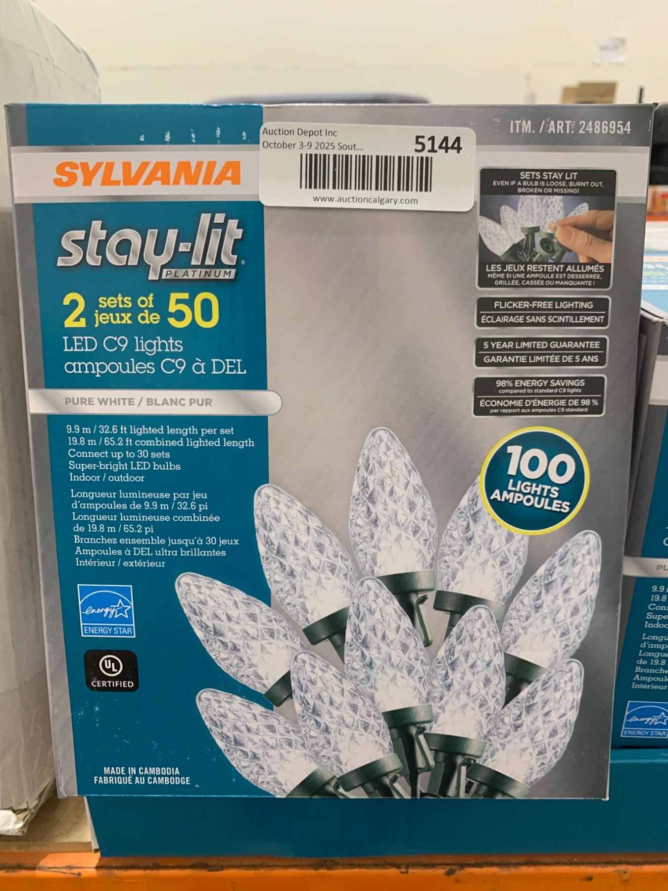 Sylvania Stay-Lit LED C9 Lights, 2 Sets of 50, Model 2466954