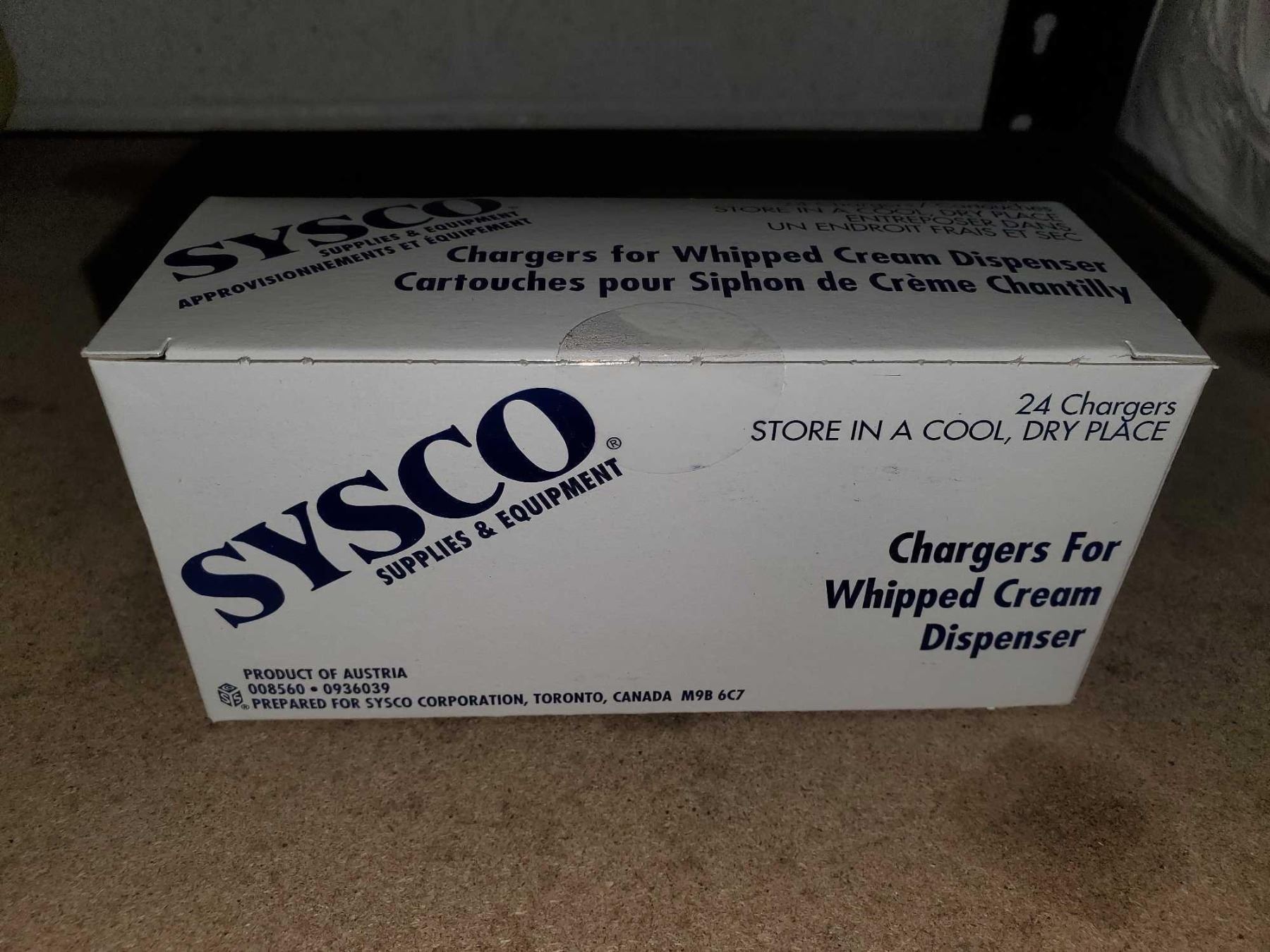 Sysco 24pk Chargers for Whipped Cream Dispense