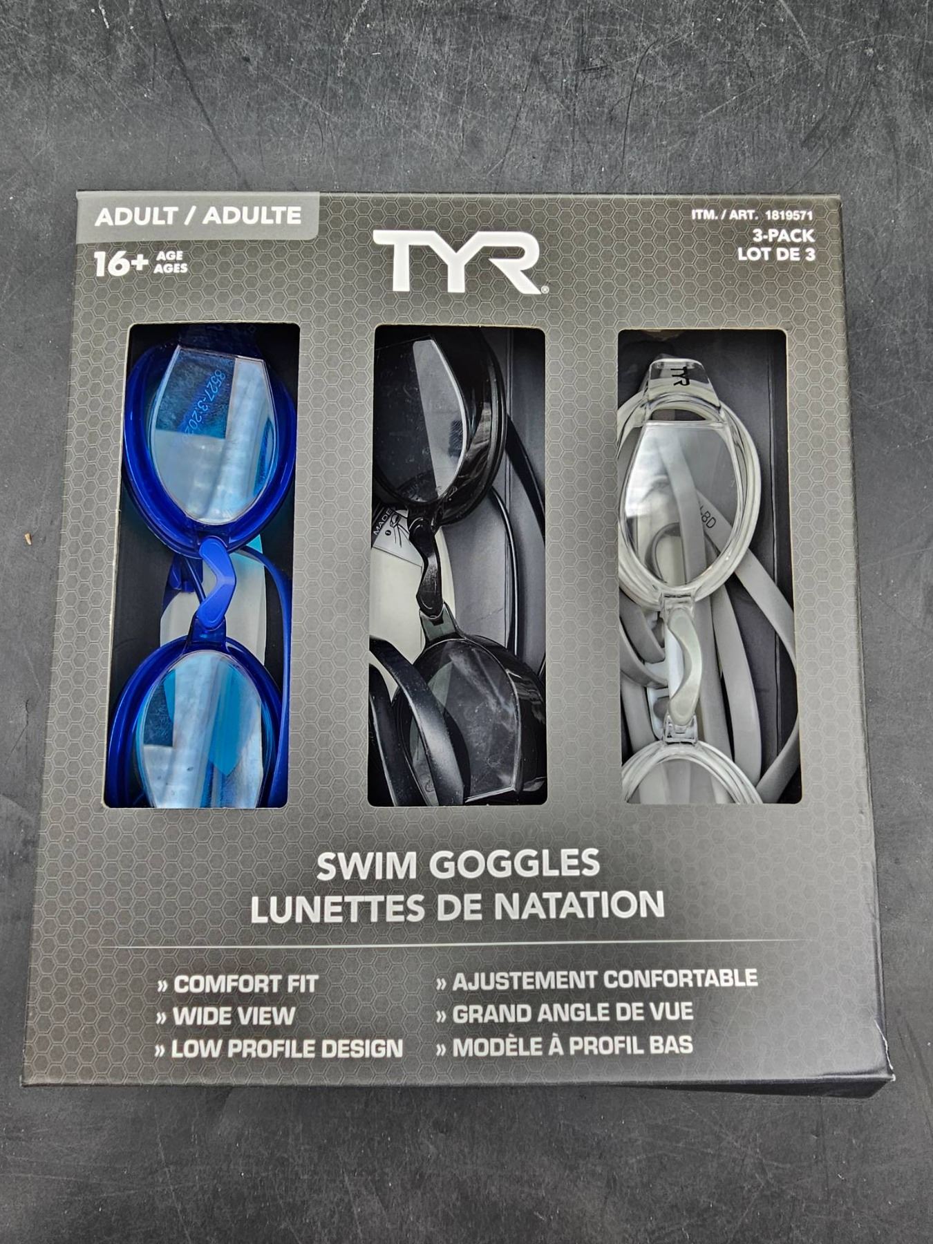 TYR Swim Goggles Adult 16+ 3-Pack with Low Profile Design