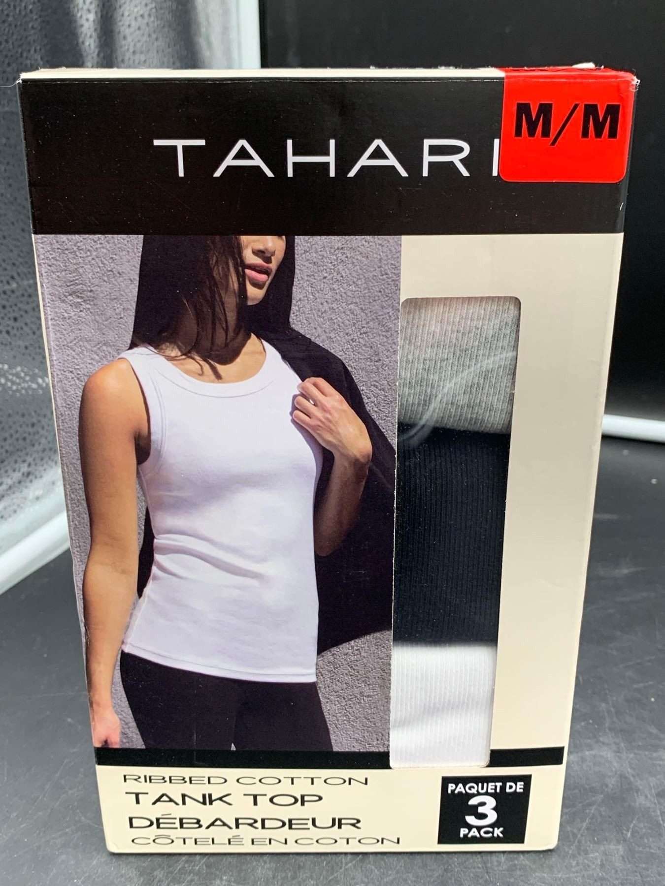 Tahari Ribbed Cotton Tank Top (M) 3pk, white, grey & black