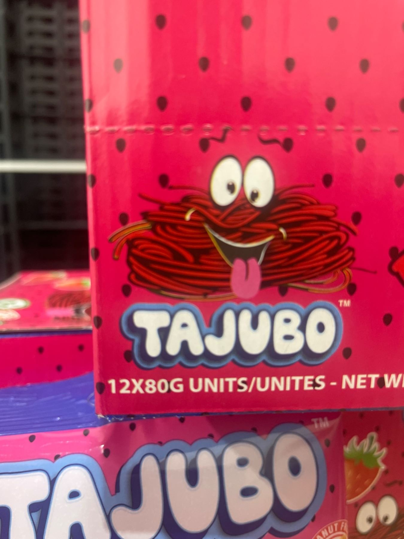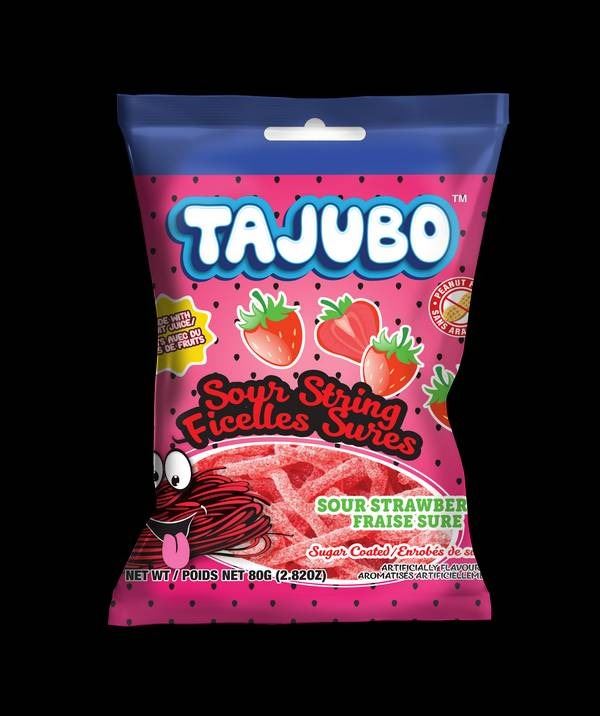 Tajubo Sour String Pickles Sweets – Sour Strawberry, 24 x 80g Units