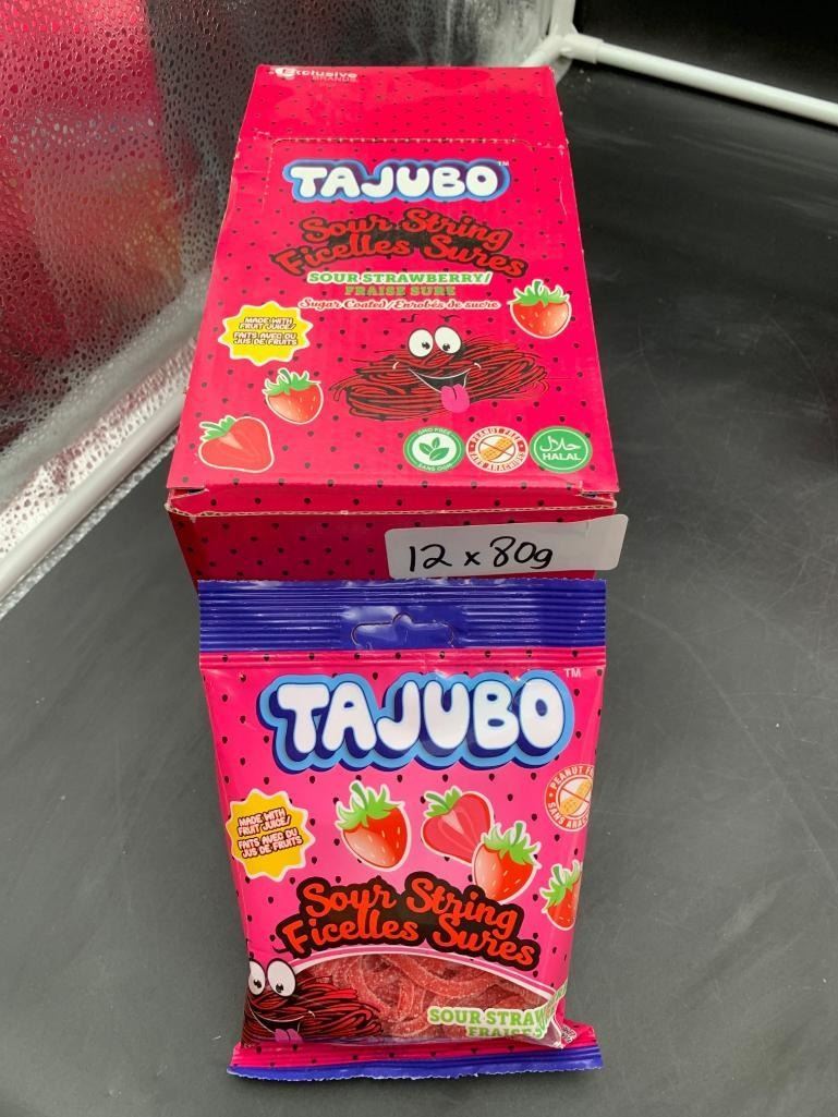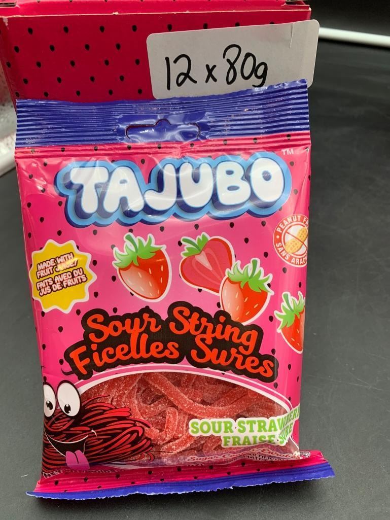 Tajubo Sour String Sour Strawberry Candy, 12 x 80g