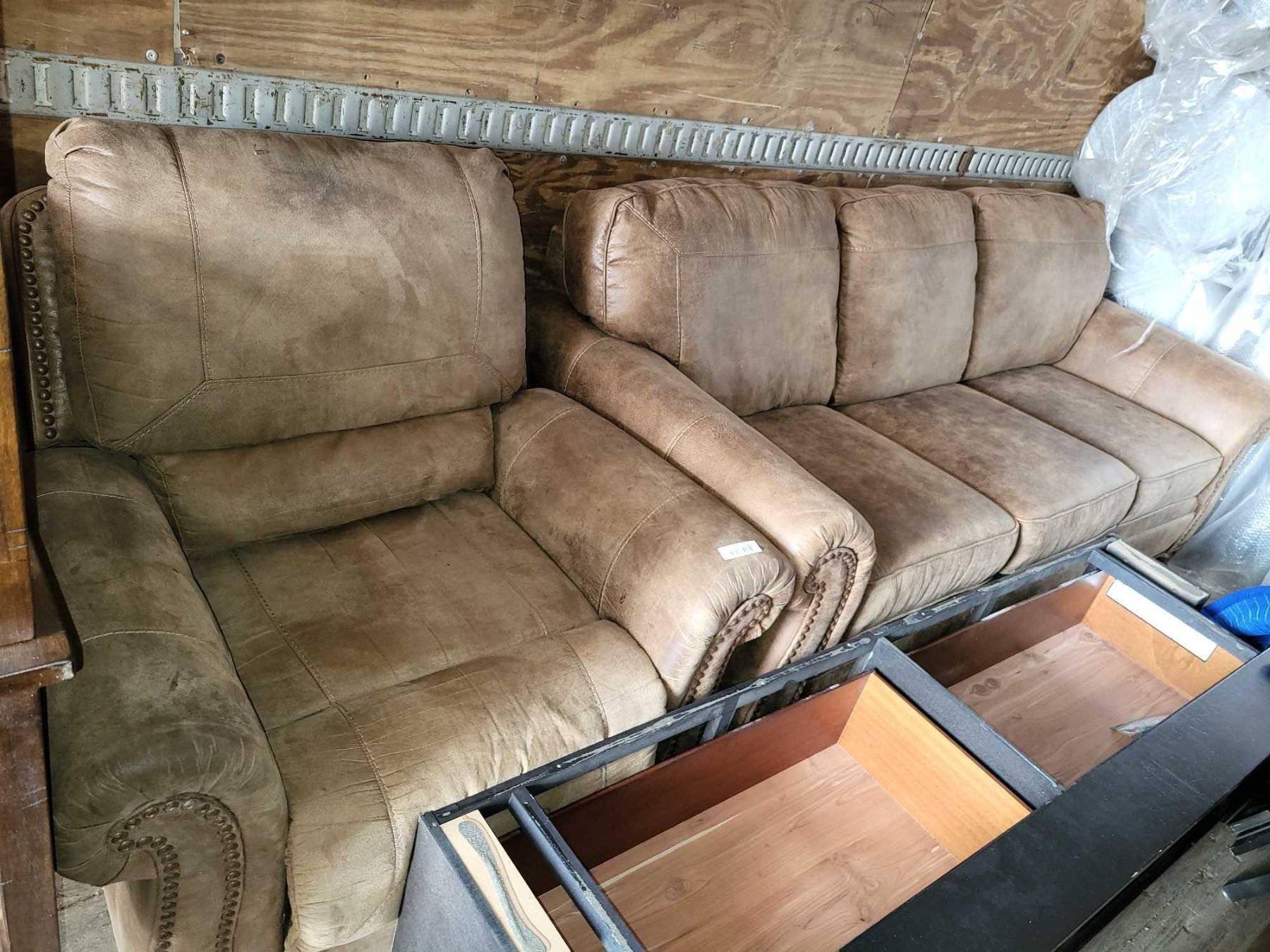 Tan MICROFIBER Sofa & Matching Chair