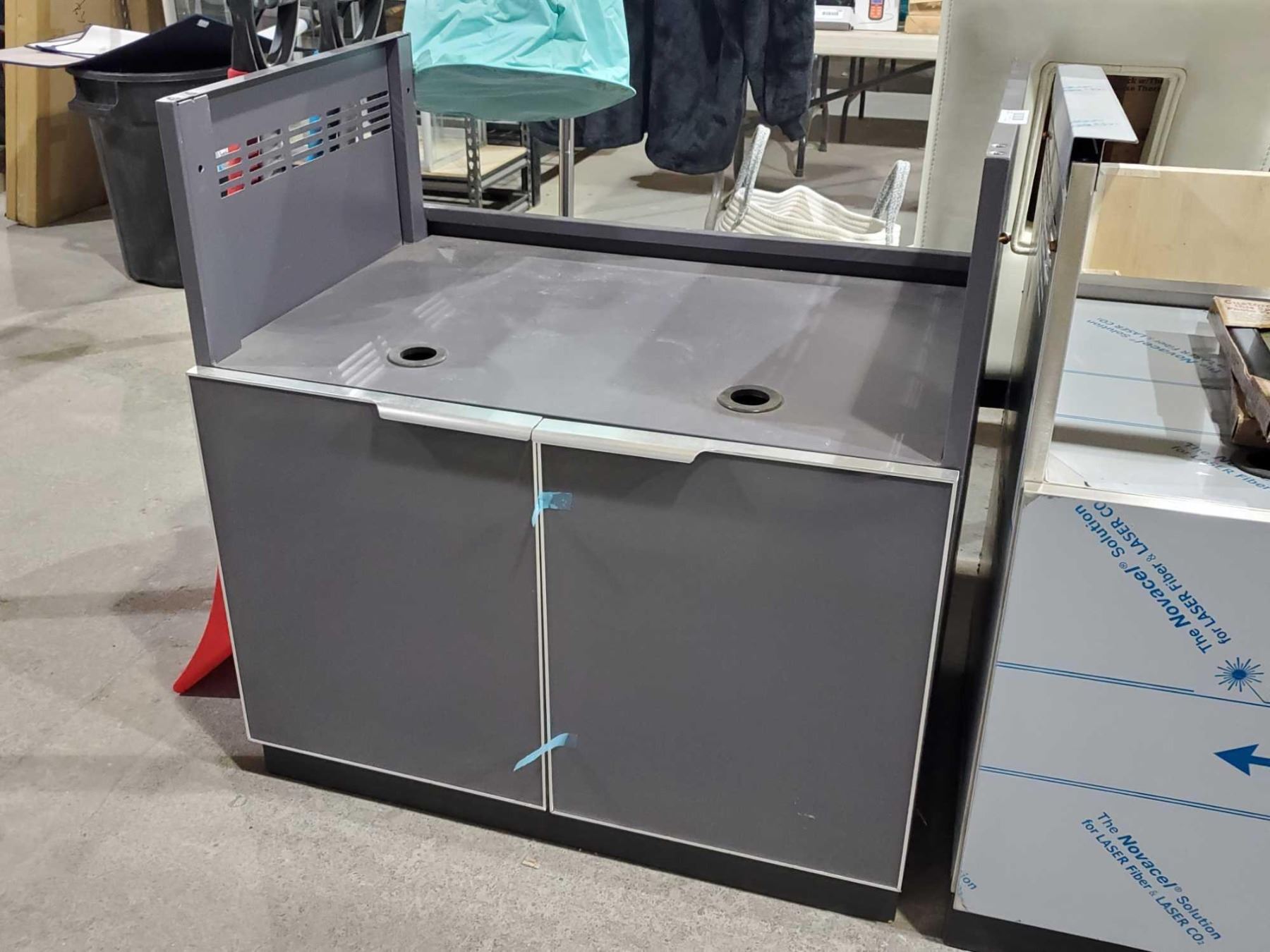 Tempered Glass Coated 2 door BBQ stand with propane tank pull out and shelves