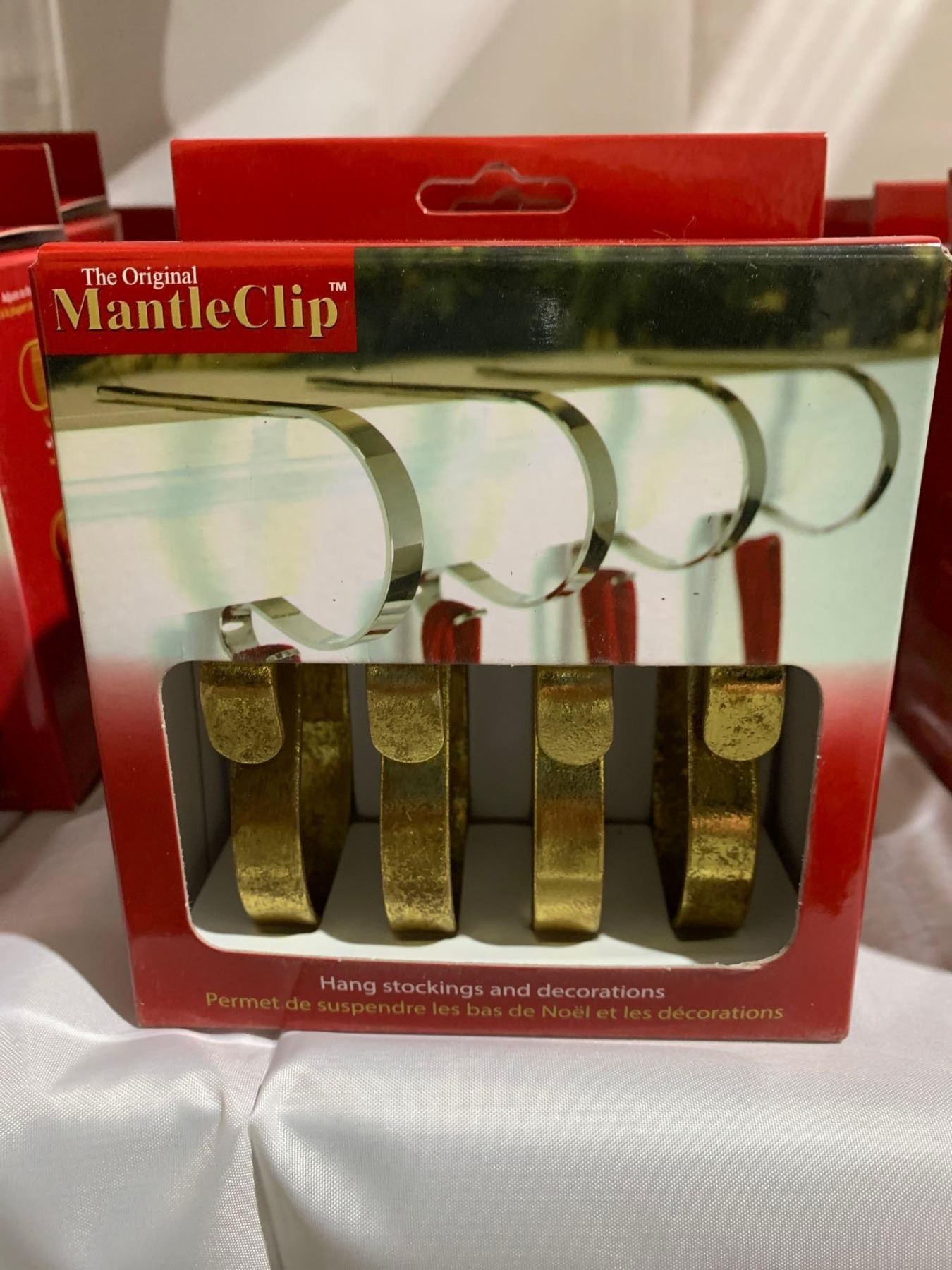 The Original Mantle Clip, Stocking Hanger 6X 4 pc - Matte Gold