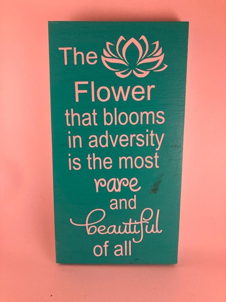 The flower that blooms in adversity is the is the most rare and beautiful of all 6X12 Inches. Made of Pine. Hooks on Back