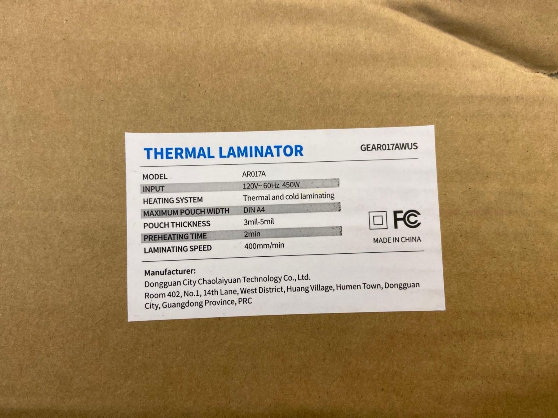 Thermal Laminator Model AR017A Thermal and cold laminating