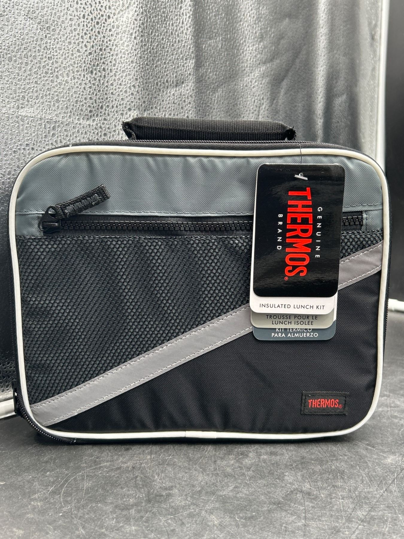 Thermos Brand Insulated Lunch Kit With Silver And Black Design