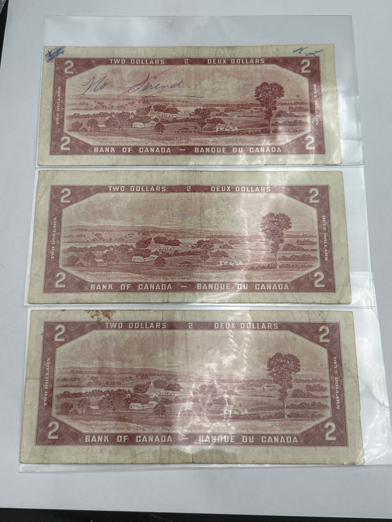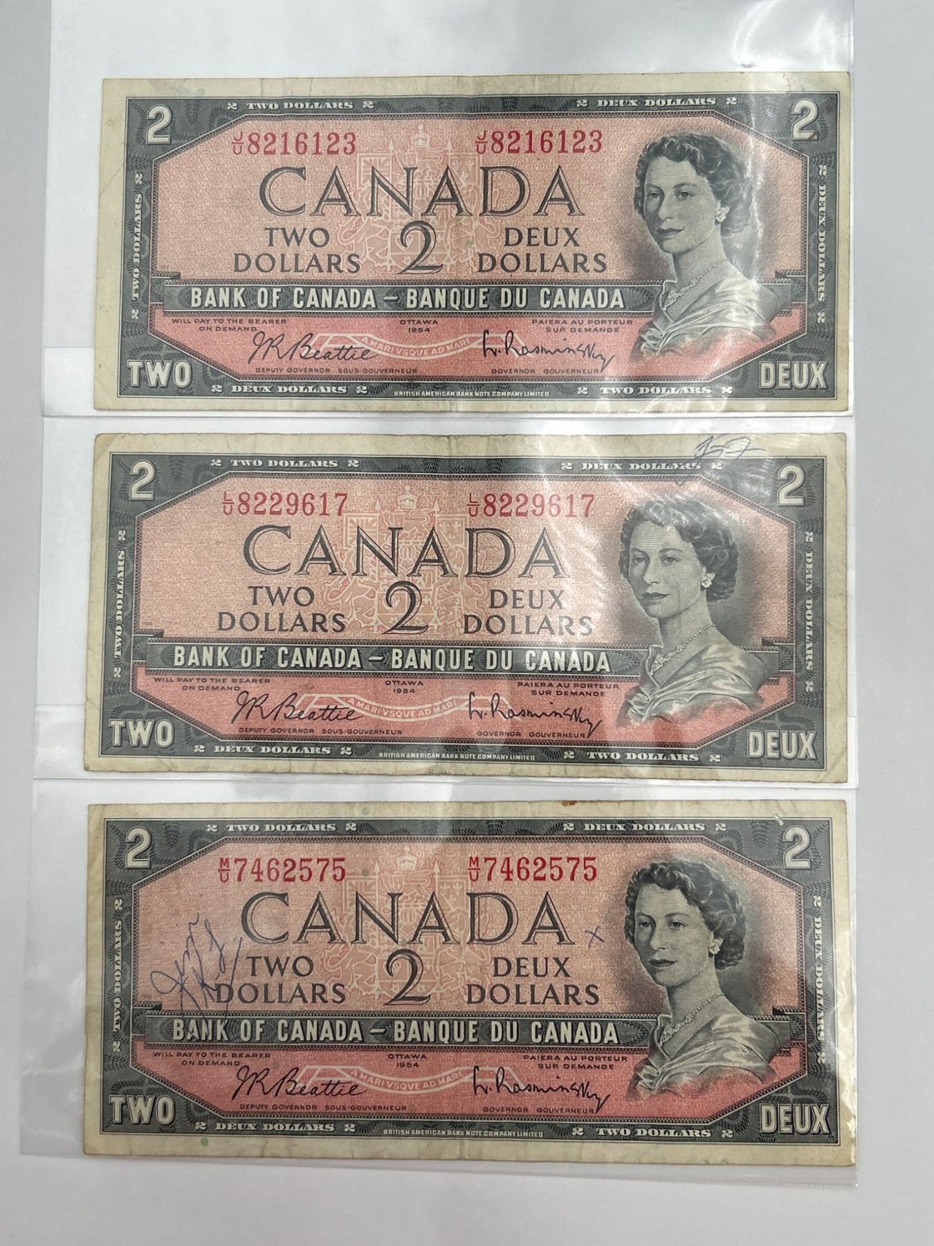 Three Bank of Canada Two Dollar Notes, 1954 Series