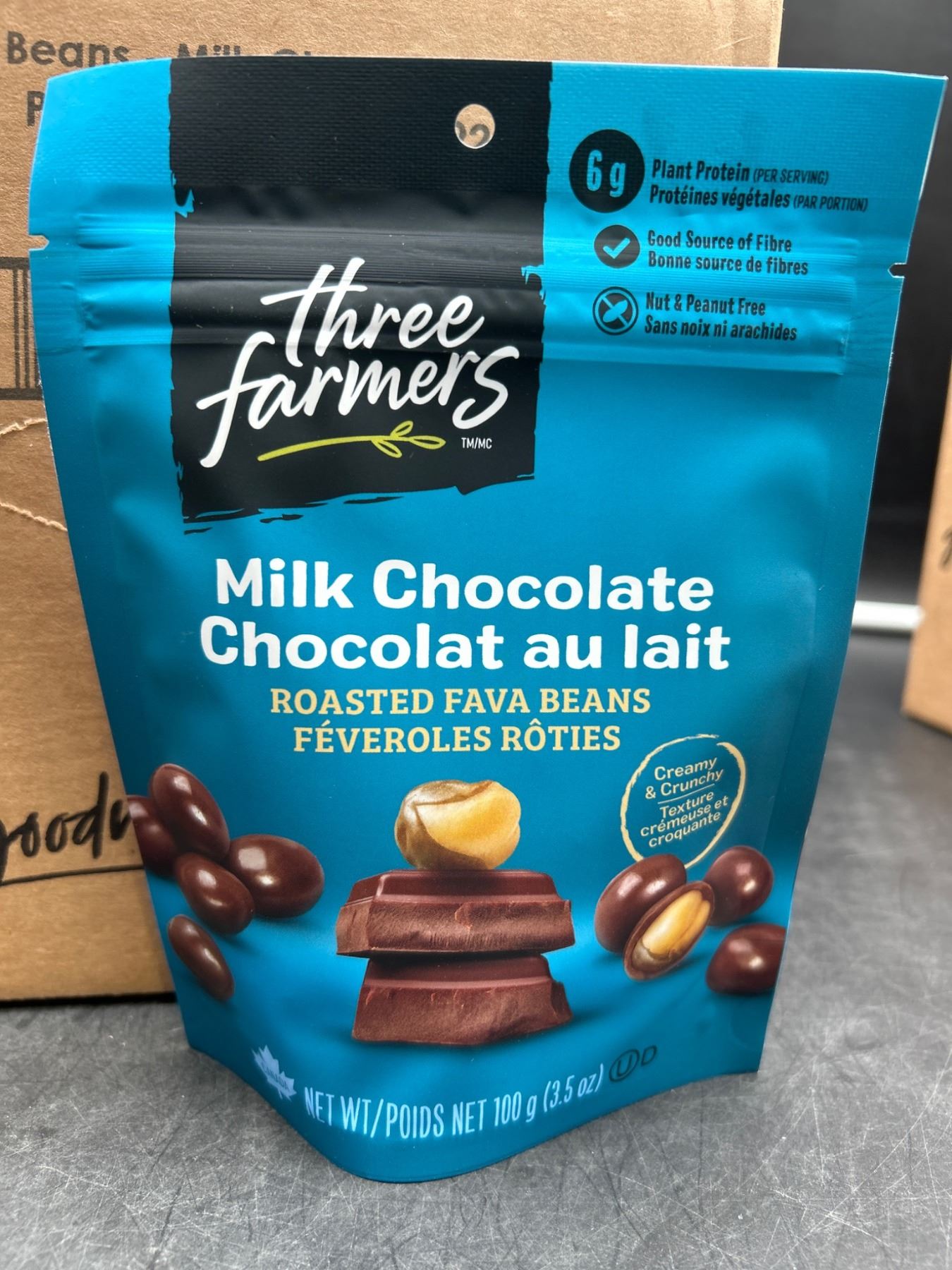 Three Farmers Milk Chocolate Roasted Fava Beans, 6 X 100 g