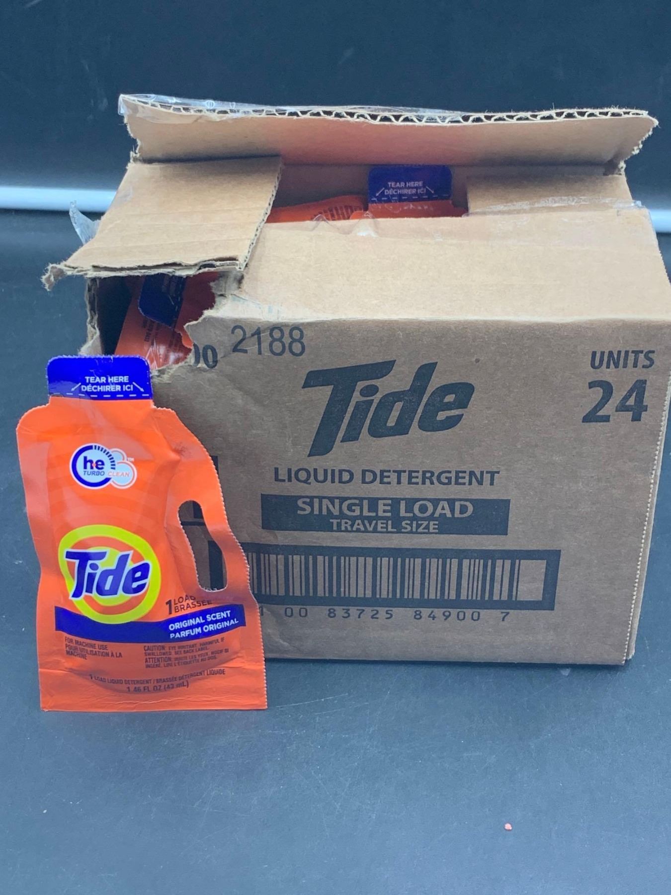 Tide Liquid Detergent Single Load Travel Sizes (24 x 43ml)