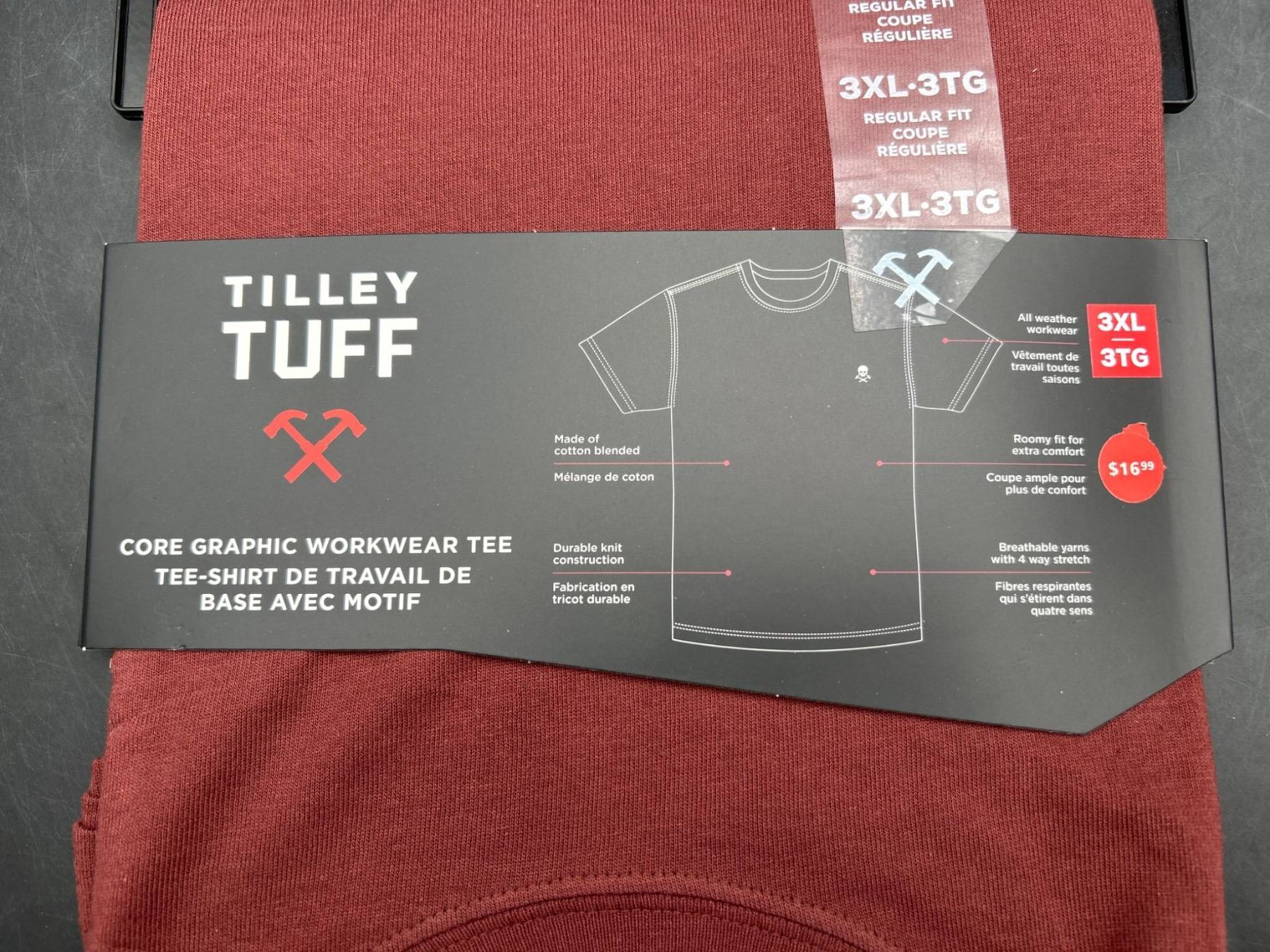 Tilley Tuff Core Organic Workwear Tee, XL, Red
