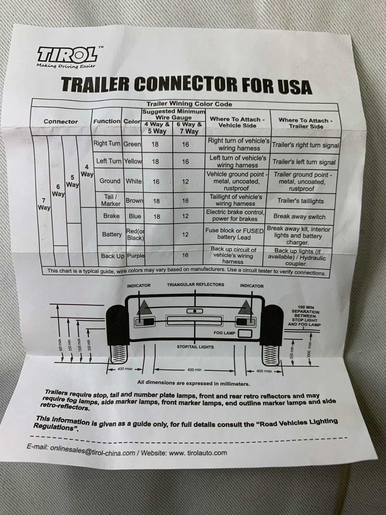 Tirol 4 pin blade to 4 pin flat trailer adapter