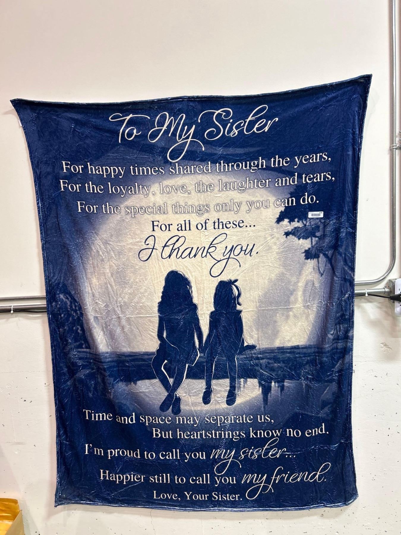 "To my sister" heart felt message blanket