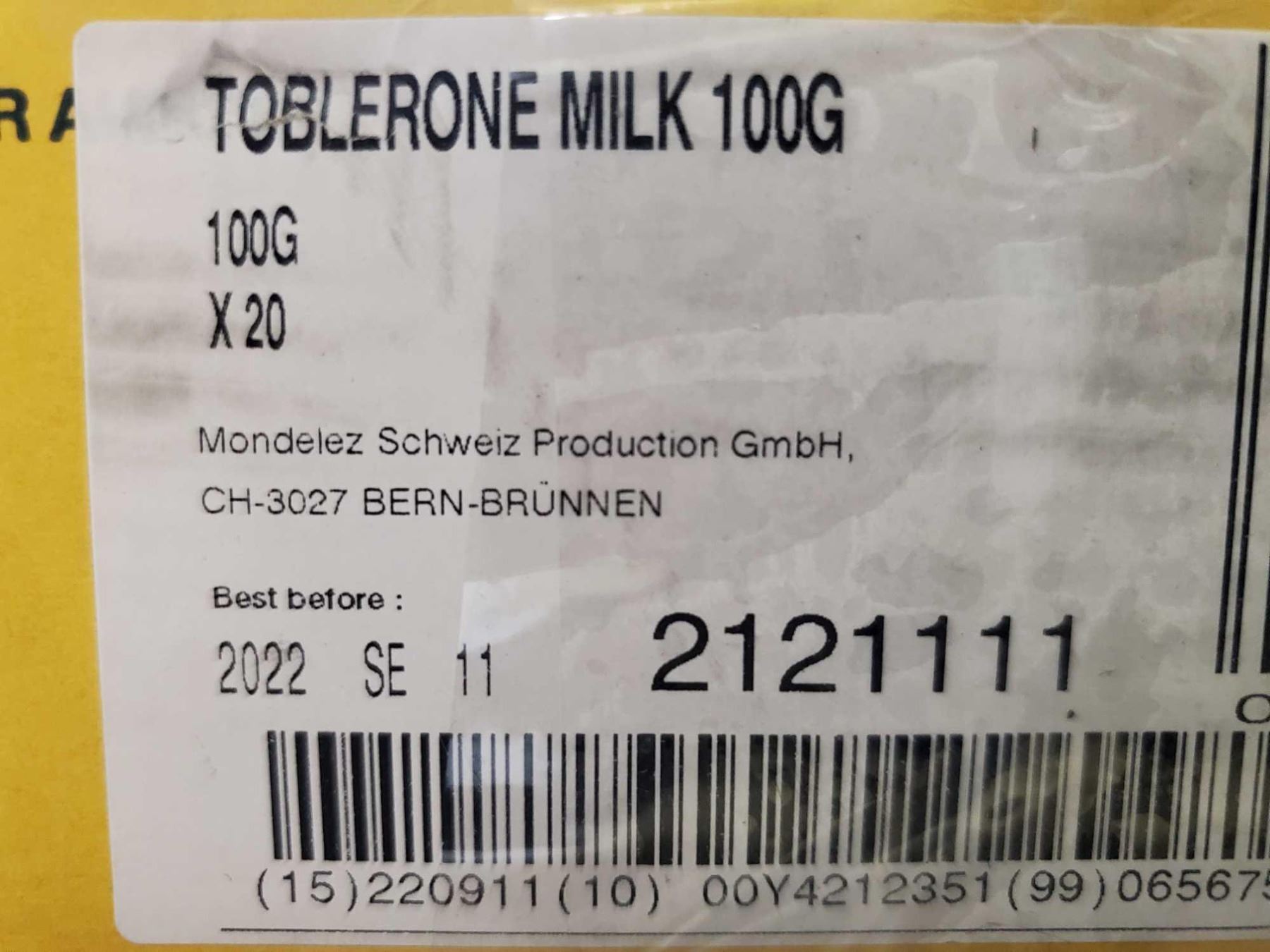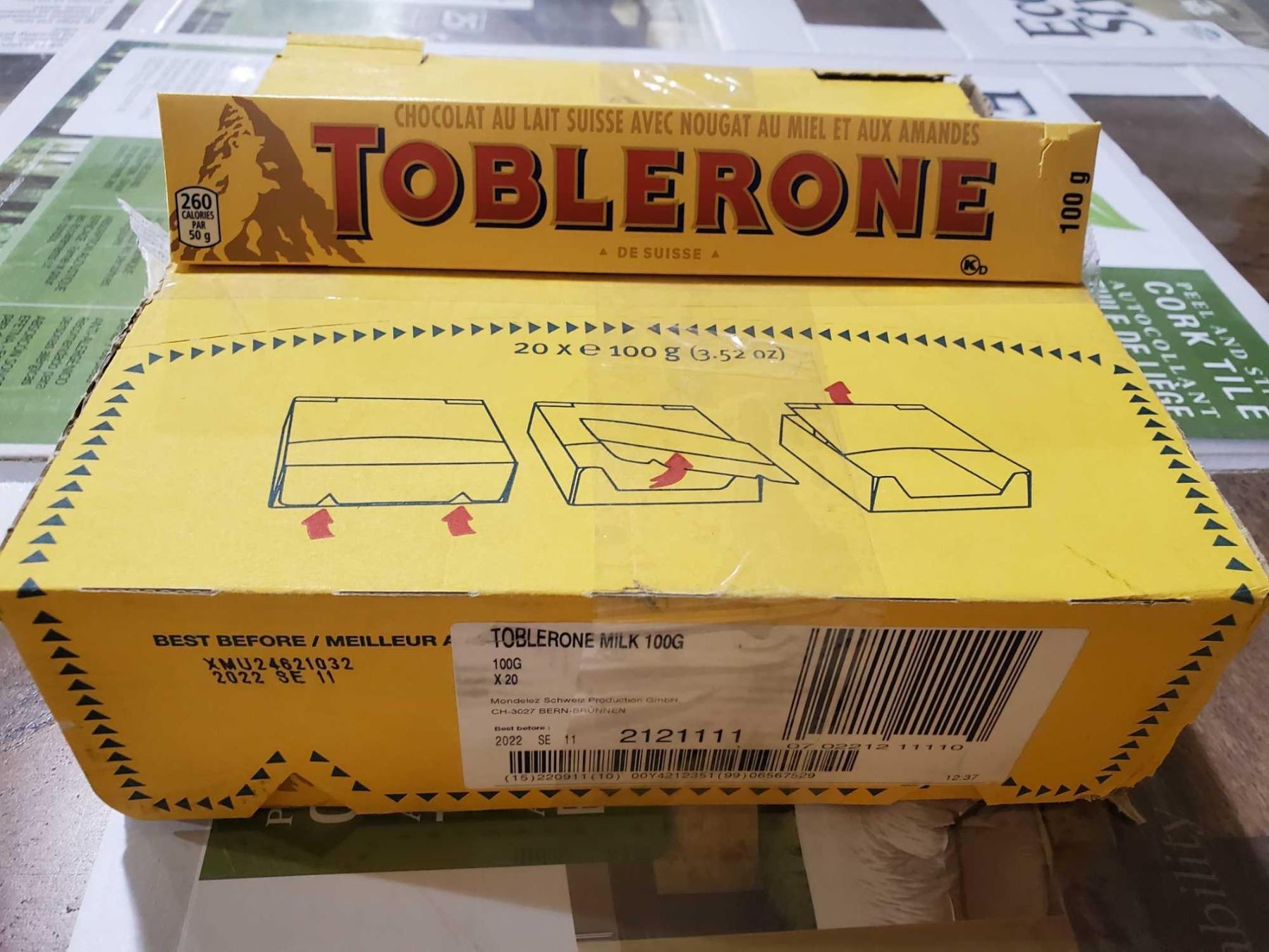 Toblerone Swiss Chocolate & Nuggat Candy Bars 20X100g