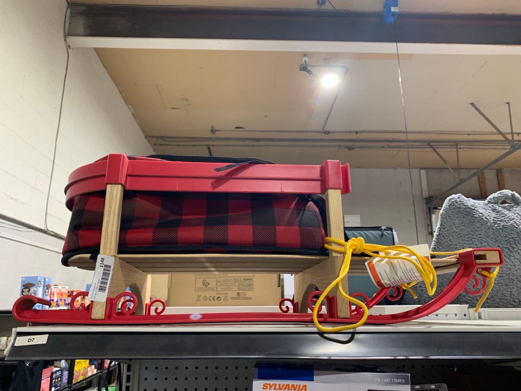 Toddler Wooden and Plastic Toboggan with Plaid Liner