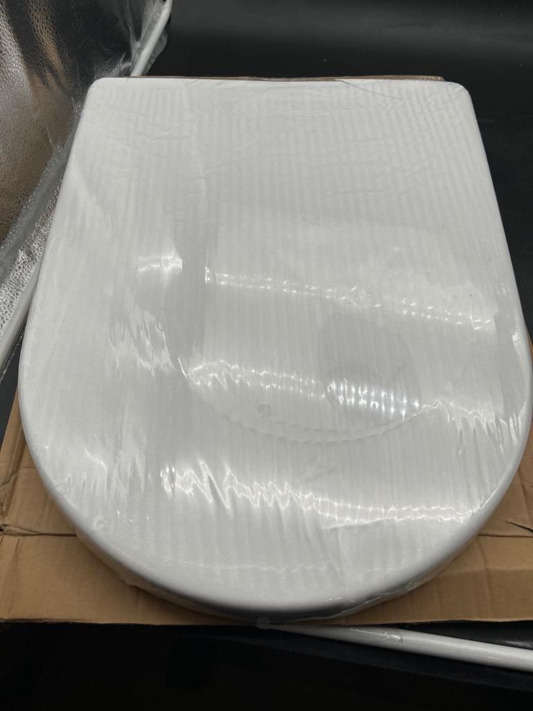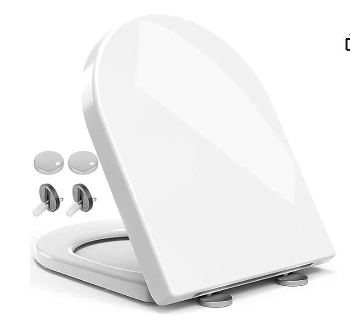 Toilet Seat, Elongated D Shape, Quiet Close, Adjustable Hinge, GD-D015 White