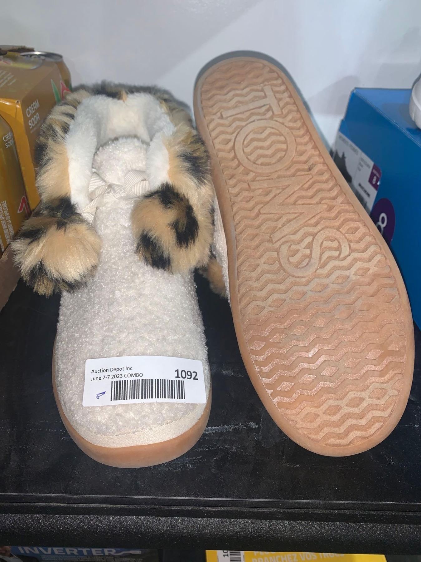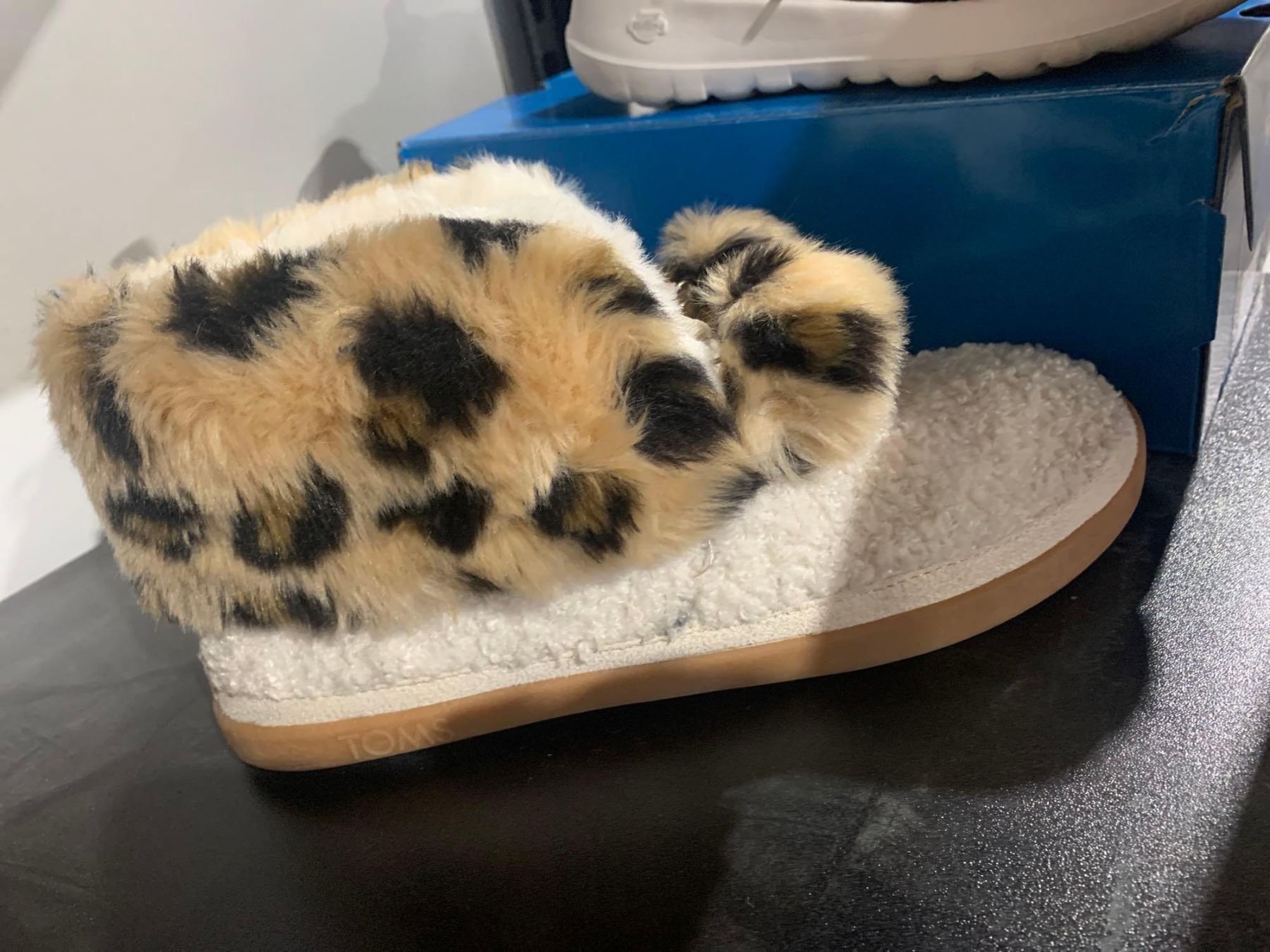 Toms Women's Celeste Ankle Slippers White & Leopard Print Sz 9.5