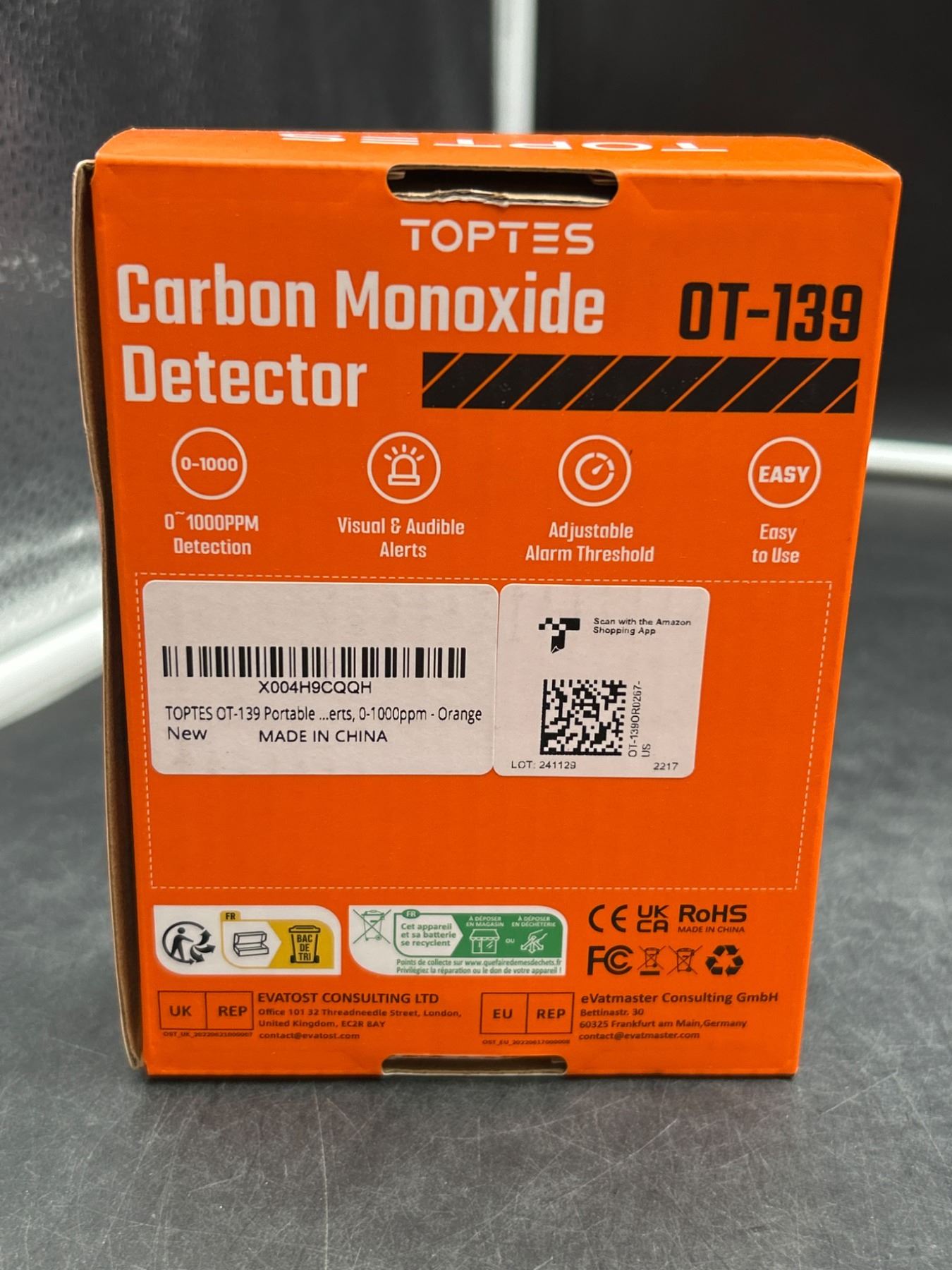 Toptes OT-139 Carbon Monoxide Detector with Adjustable Alarm Threshold
