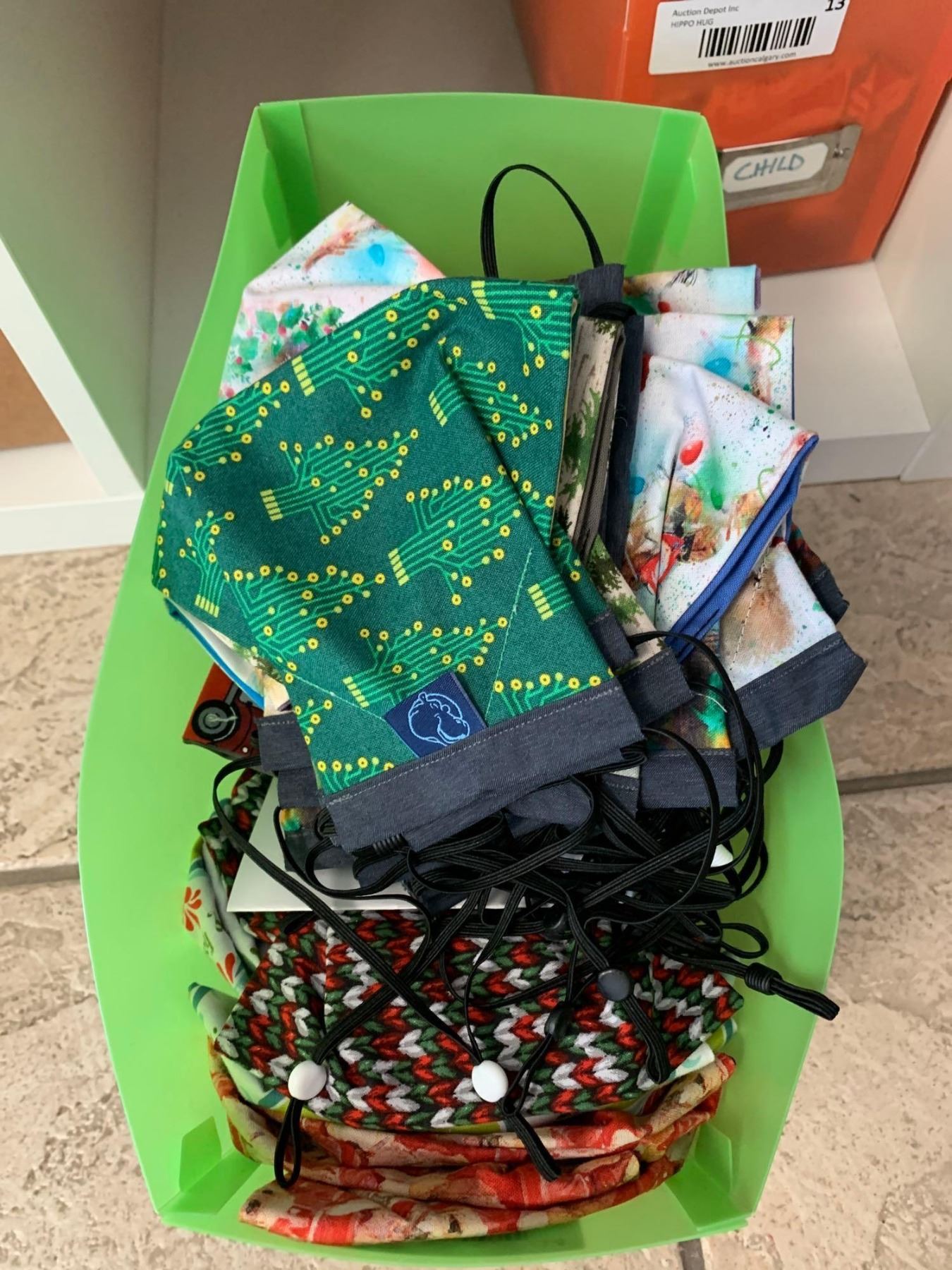 Tote of Hand Made Cloth Masks assorted