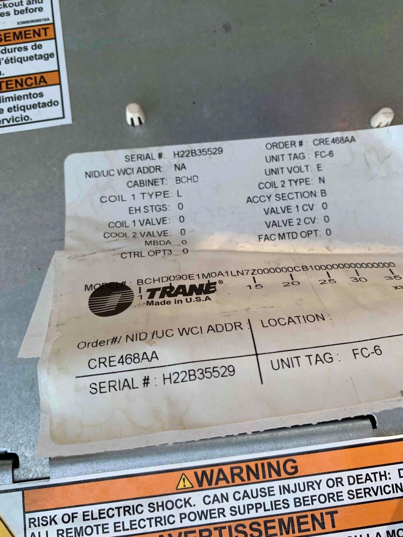 Trane BCHD0E1M01LN7Z000000CB1000000 COIL Air Makeup Unit - NEW IN CRATE FROM DAMAGED FREIGHT CLAIM