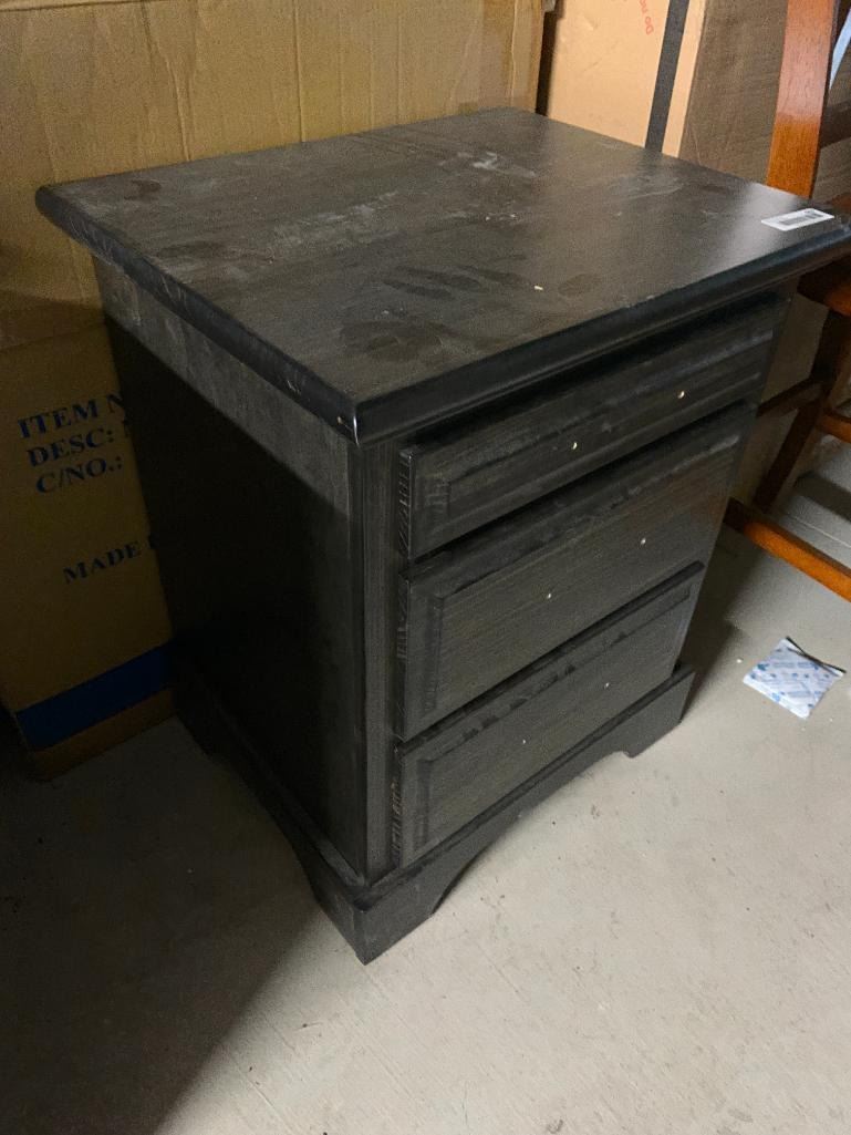 Triple Door Wood Grain Grey Night Stand