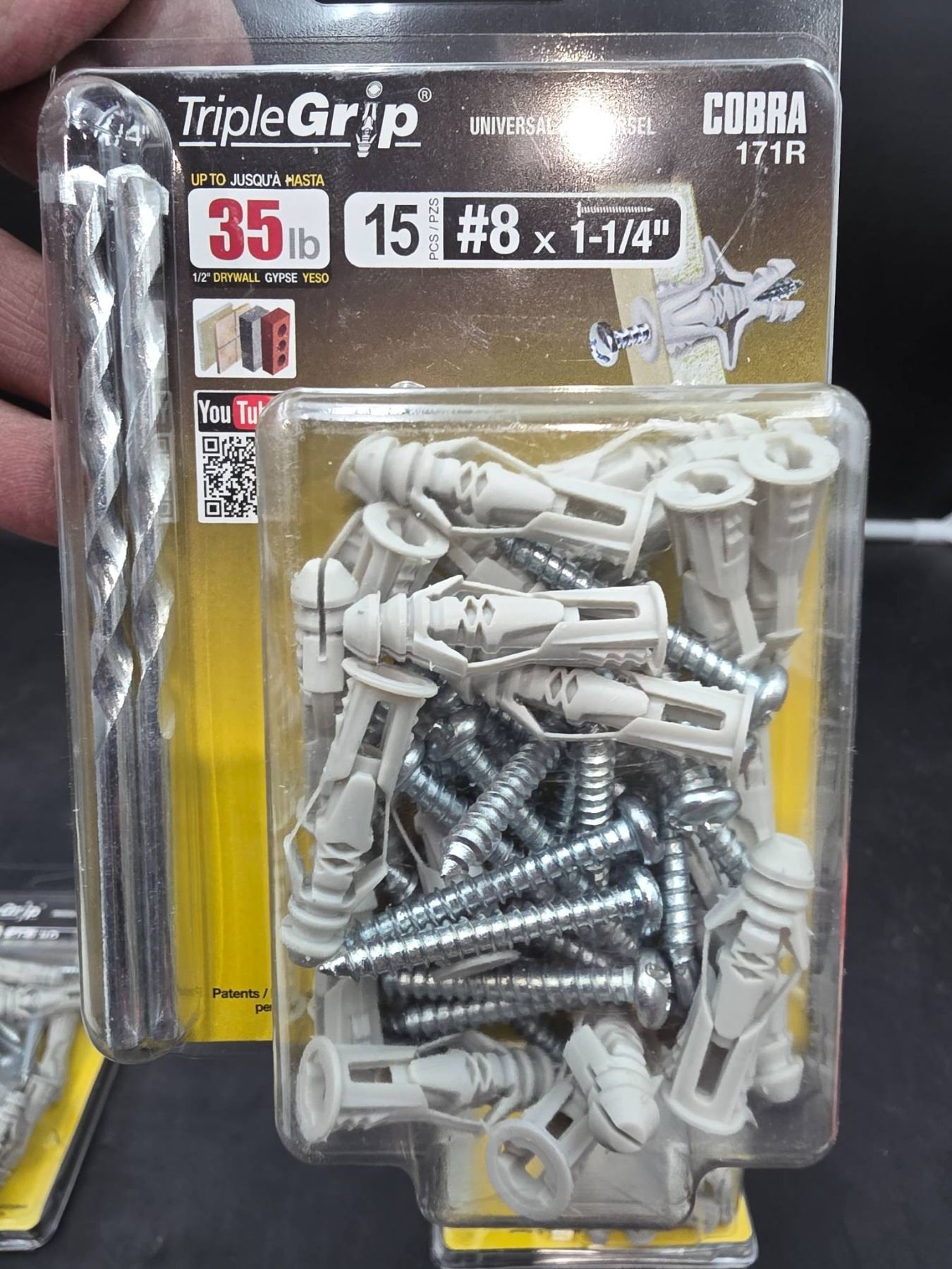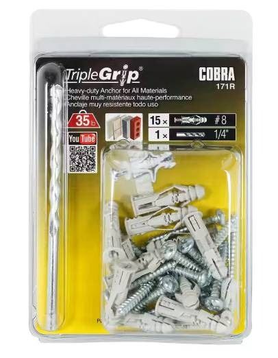 Triplegrip Cobra 171R Wall Anchors with Screws, 3×15-Pack
