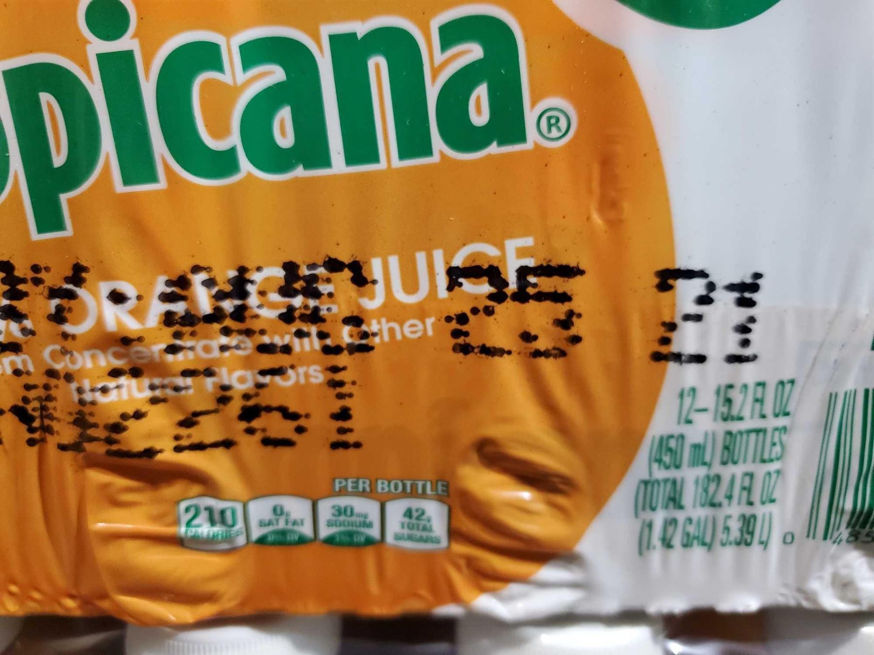 Tropicana Orange Juice 12 z15.2ozPack - Past Best Before date
