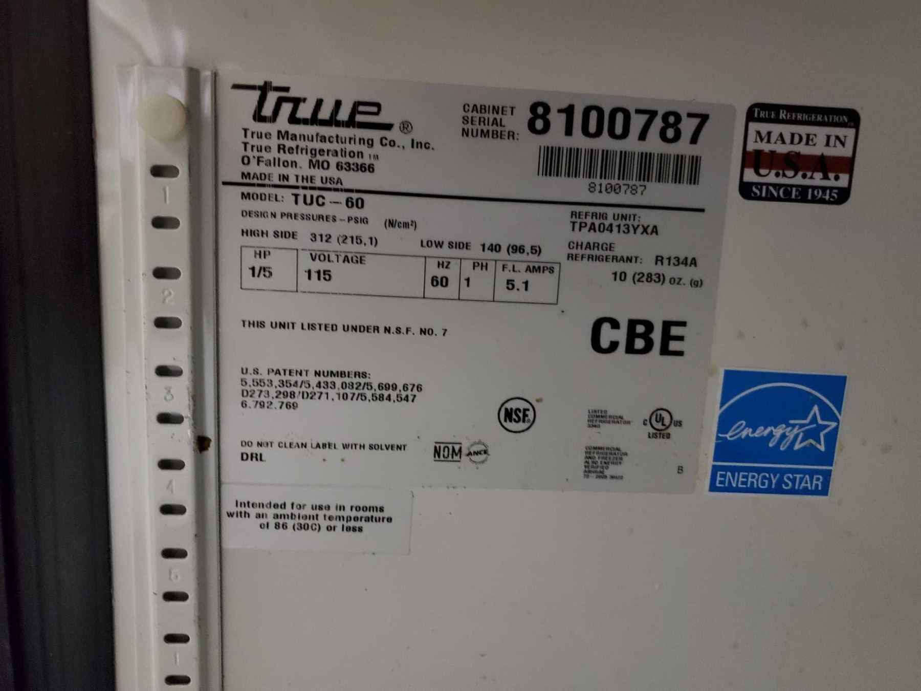 True Model TUC-60 Undercounter refrigerator w/ 2sections & 2 doors
