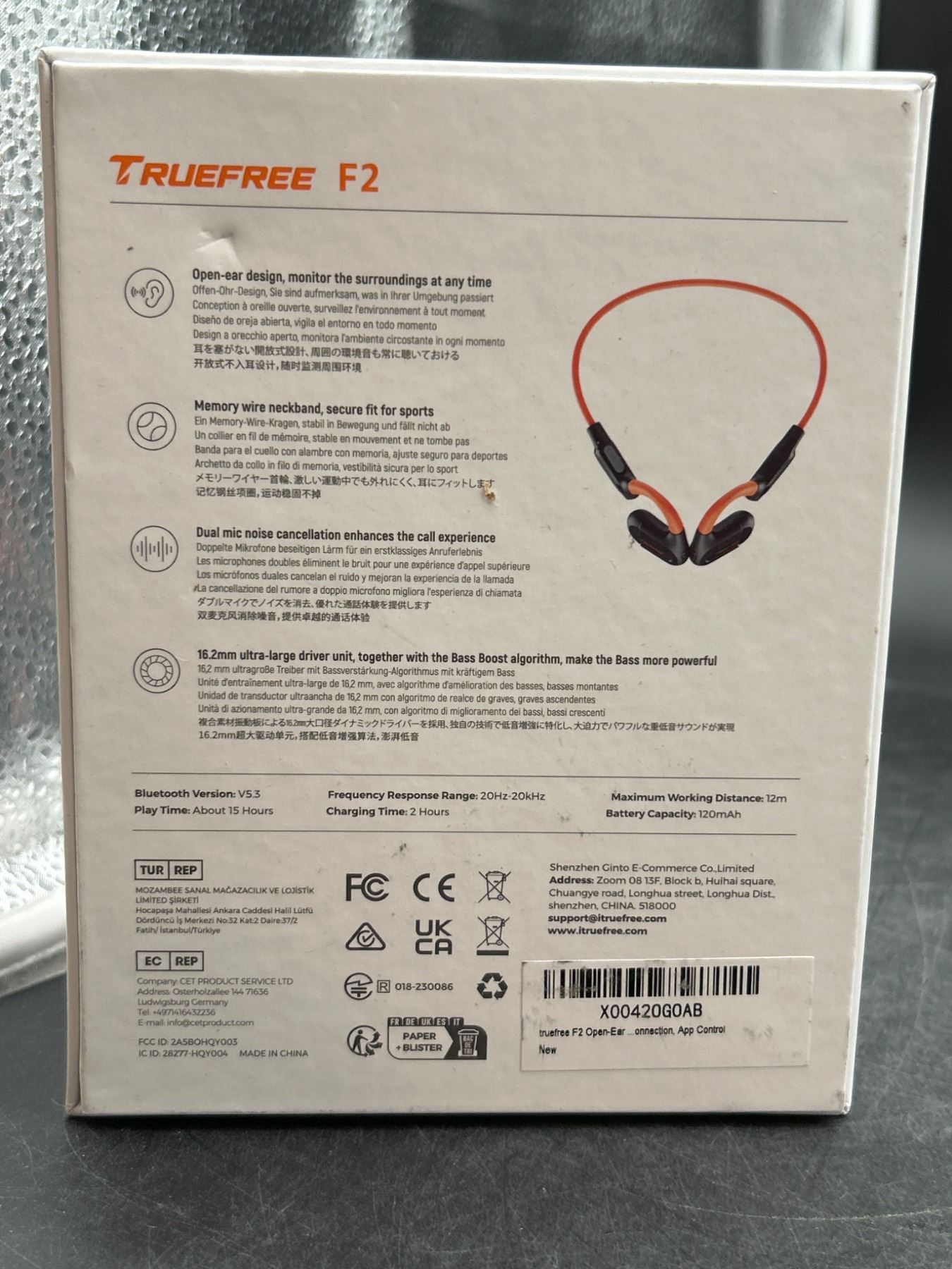 TrueFree F2 Open-Ear Headphones with Bluetooth Connectivity